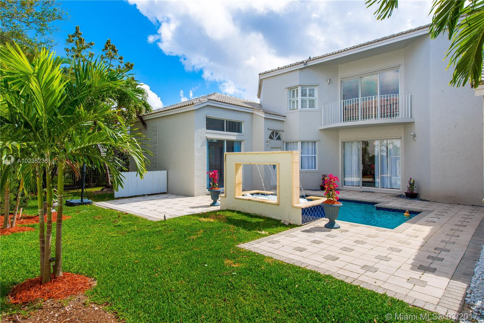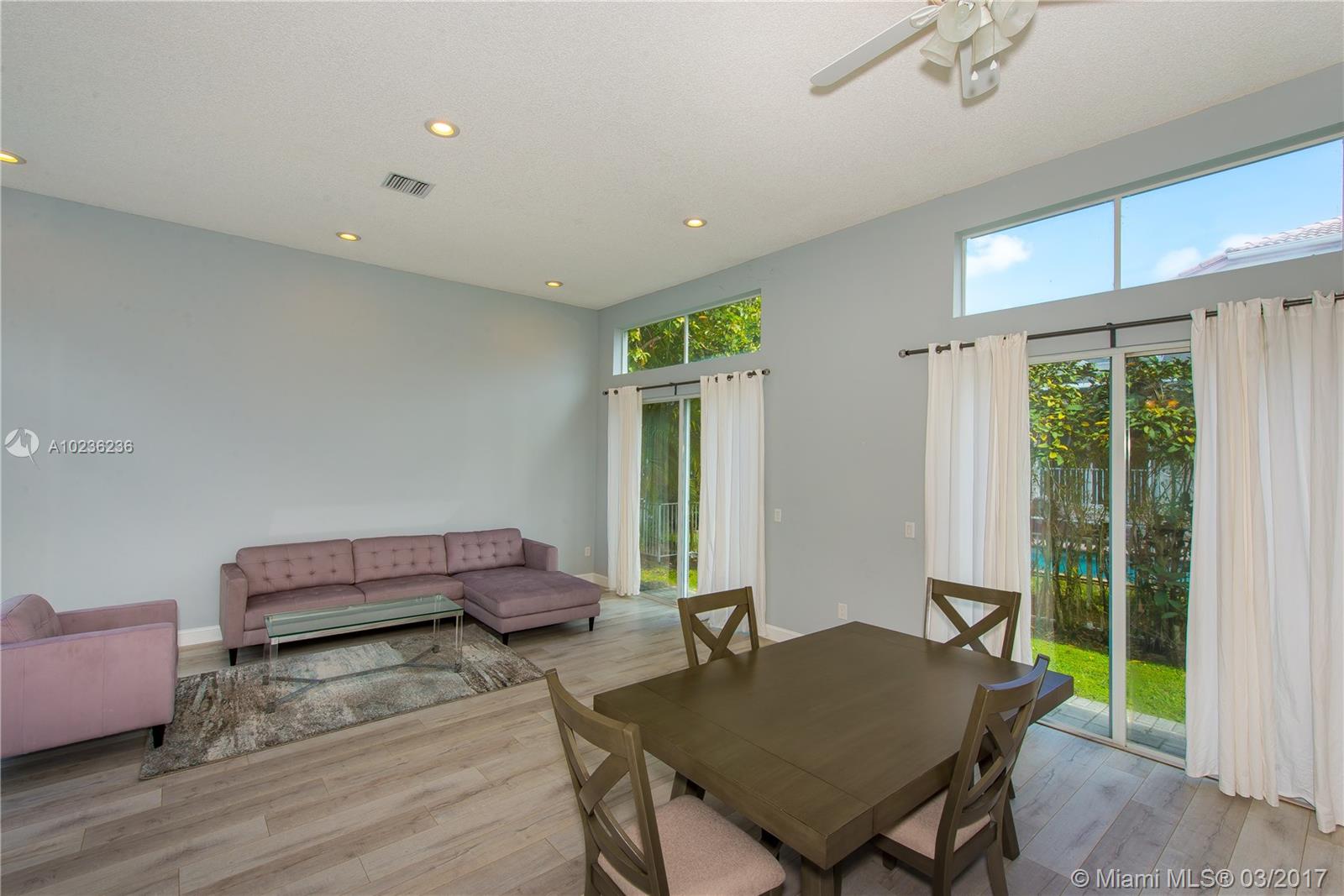 Popular Courtyard model with 3/2.5 main house and 1/1 guest house. Perfect for in-laws, maid or home office. Beautifully upgraded with remodeled kitchen and master bath. Gorgeous plank flooring and freshly painted. Soaring ceilings and plenty of natural light. Pool with spa and waterfall. Gated community with Pool and Tennis. Nice sized yard. Perfect location.