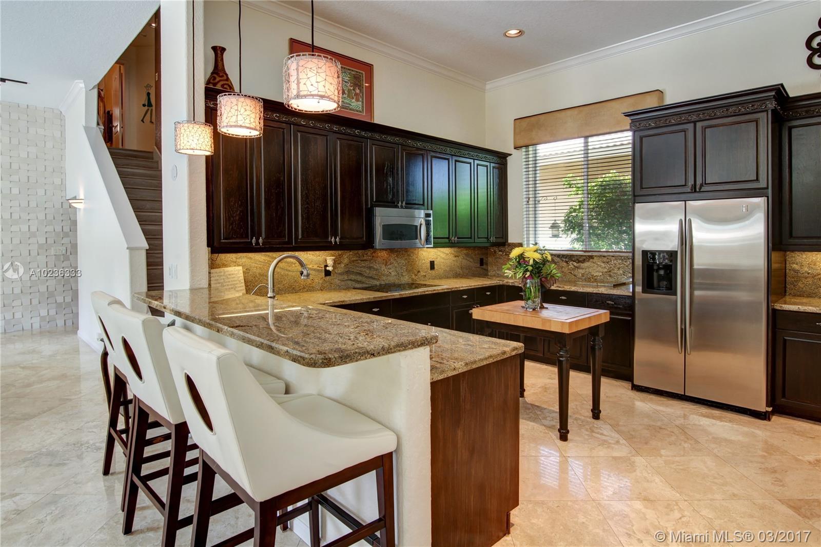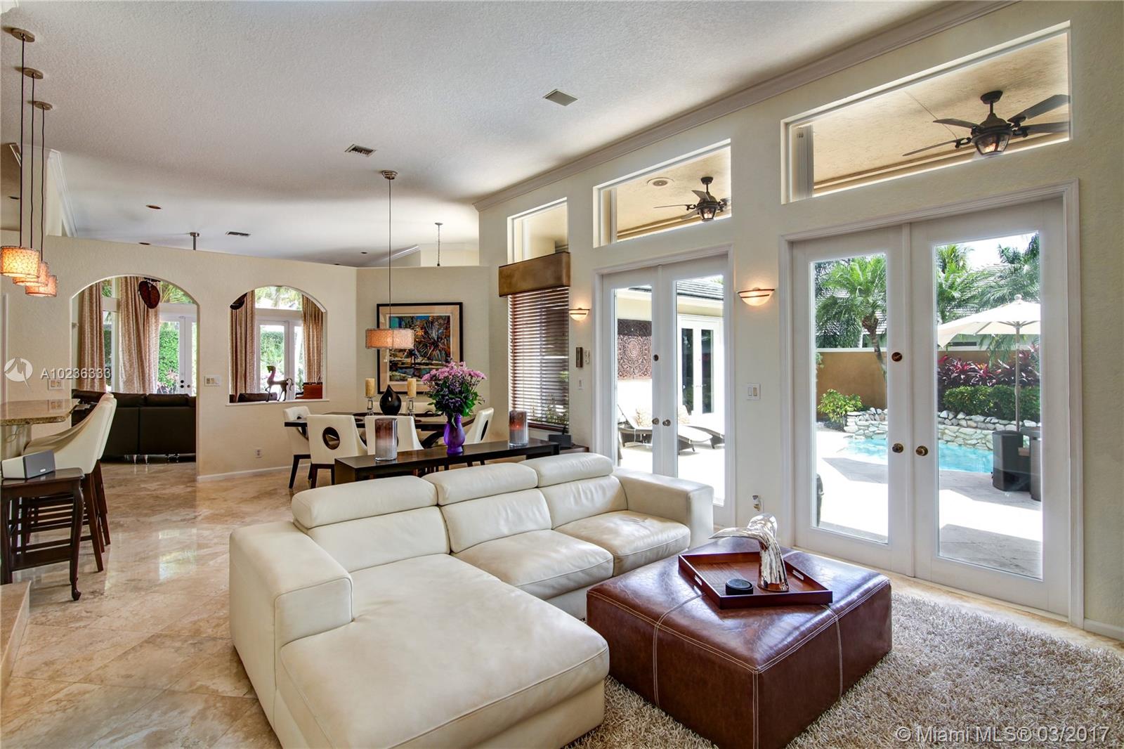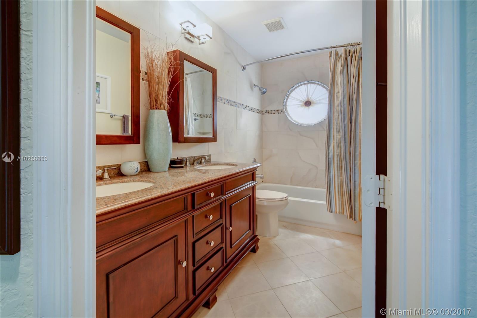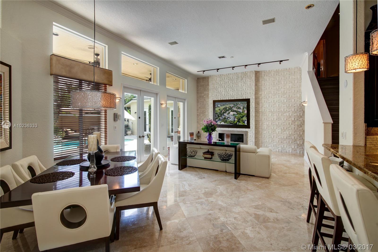 Step into this beautifully appointed Two Story COURTYARD home featuring separate Guest House surrounded by serene Saltwater Pool and Travertine Patio area with Summer Kitchen. Master Bedroom and 2 additional Bedrooms on the ground level PLUS 3 Bedrooms on second level. Updated Kitchen, High Gloss Marble Flooring in living areas and Limestone Feature Wall with Ethanol Fireplace. Expansive Back Yard complete with Fire Pit makes this a perfect home for Entertaining and Enjoying South Florida living.