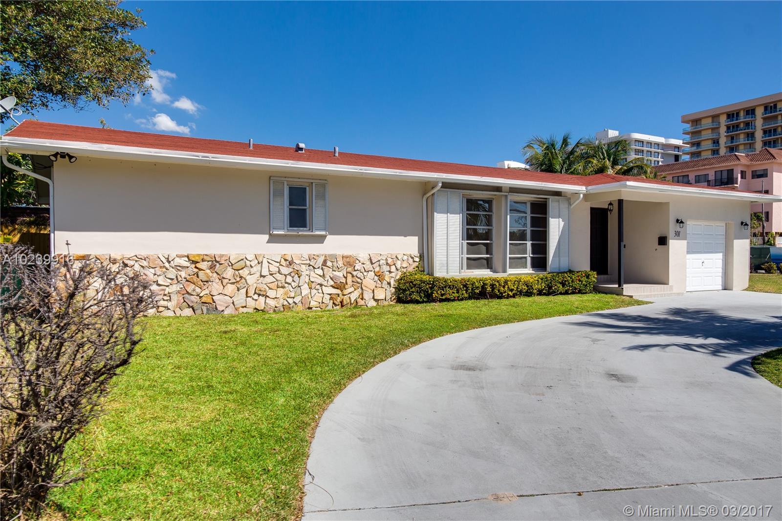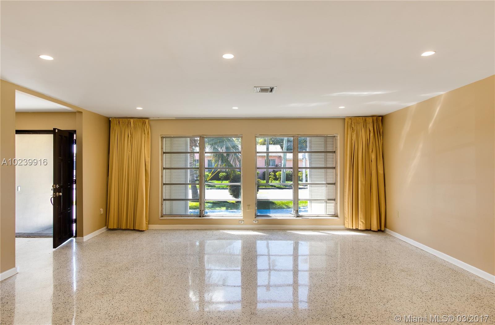 One block from the beach! Spacious updated Surfside home with tons of space for living and entertaining. Updated bathrooms, an updated kitchen with stainless steel appliances. The home also features terrazzo floors throughout with a great layout. A real garage with space for one car. In front is a grand circular driveway for additional parking space and cars and a sizeable side yard.