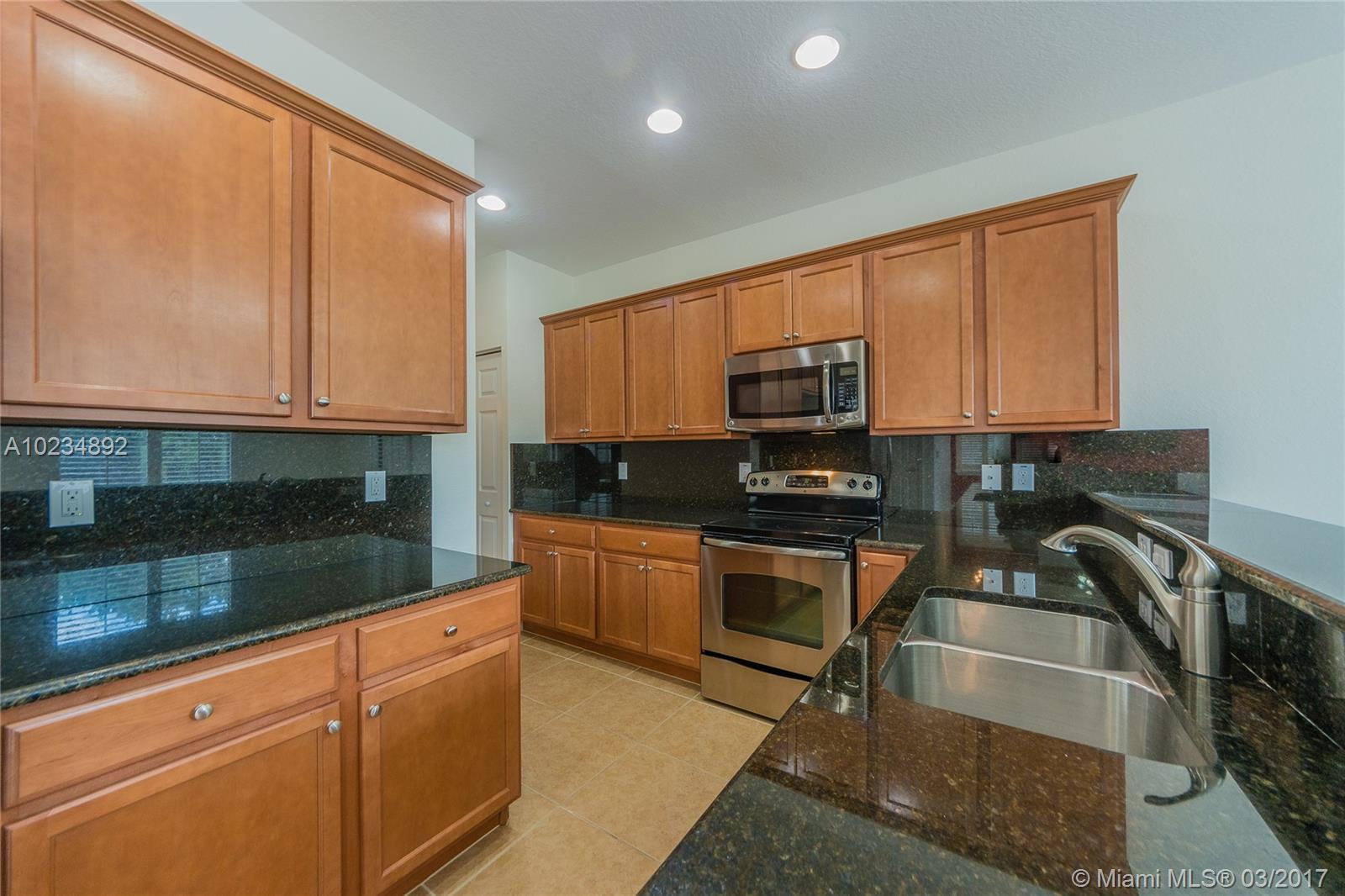 Spectacular Corner Unit, 5 Bedroom 4-1/2 bath 2-car garage, Elegantly designed and decorated throughout with many updated features. Kitchen has stainless steel appliances, granite countertops. Tile throughout, wood staircase, plantation shutters, custom closets, Hunter Douglas/blackout shades, high-end lamps that stay with home, large patio with motorized roll-away awning, washer/dryer upstairs, Custom wall unit with flat screen TV, brick décor front entrance, pavers in driveway, Move-in Ready. Enjoy an amazing Club House at Islands of Doral plus the pool located in the community. Exercise room, Tennis & Basketball court, party rooms and much more. Check Brokers Remarks.......won't last
