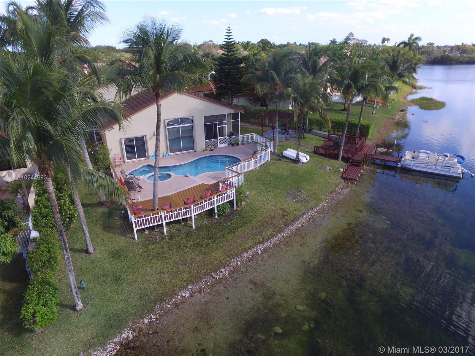 Cayman model home in gated community of Las Brisas with upgraded kitchen and serene view of lake. New Metal roof in 2007. Salt water pool with sun deck and patio. Home has a private dock on one of Pembroke Pines largest lakes. Master is down stairs with additional guest bathroom. Upstairs are three bedrooms and bath. Wood floors throughout with the exception of the master which is tile. Accordion hurricane shutters. 3 Year old upgraded A/C. 24/7 roving security. Newly Landscaped. Owner is planning to replace flooring. Move quickly and select your style and Color.