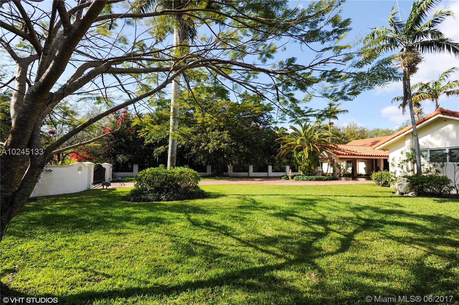 Tennis anyone? Exquisitely updated in 2014! Gorgeous gated estate home in the most prestigious area of Pinecrest! Impact windows, doors, marble floors, keystone accent walls and fireplace, hardwood Mahogany floors in all bedrooms. Designer marble baths, vaulted wood ceilings. Bright and spacious kitchen, stainless appliances, large cooking island has seating, open to huge family room. Immense back yard for entertaining! Lighted tennis court, heated salt pool, tiki hut with outdoor kitchen. Unforgettable. Live the dream!