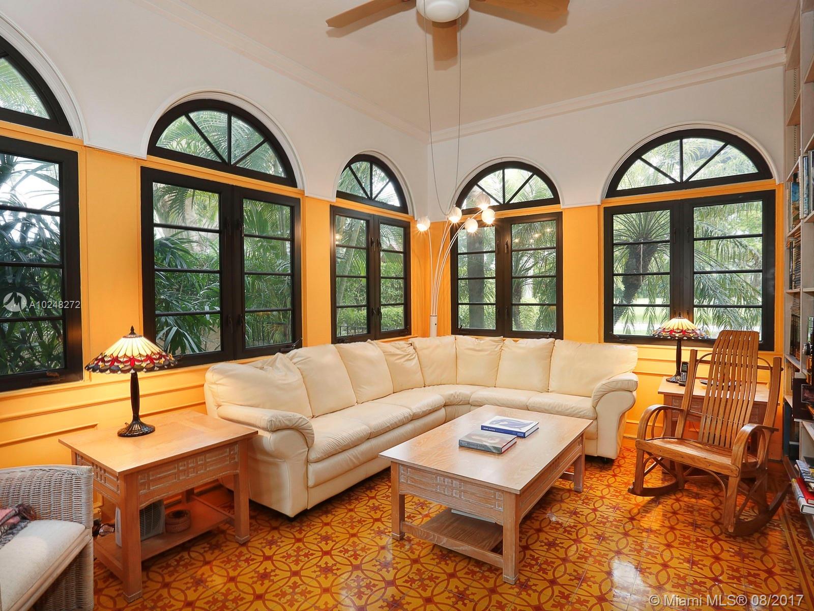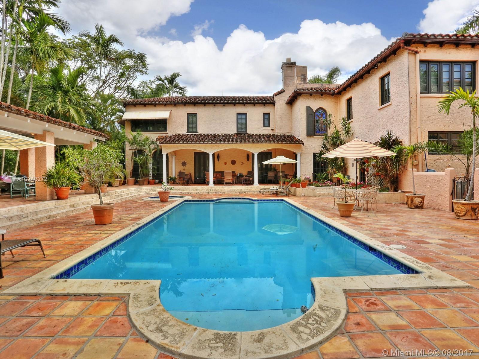 Fronting the Granada Golf Course is this Mediterranean Revival Style historic residence, designed by Architect Louis D. Brumm, showcasing the juxtaposition of one & two story sections, classic barrel tile roof, prominent arched windows & an open porch featuring round arches. Offering +/- 5700 Total SF, impact windows/doors, 3/2.5 main home with dens, sitting rooms, formal living & dining parlors and 2 separate guest suites/maids quarters, garage & backyard with large pool, spa & covered patios.