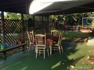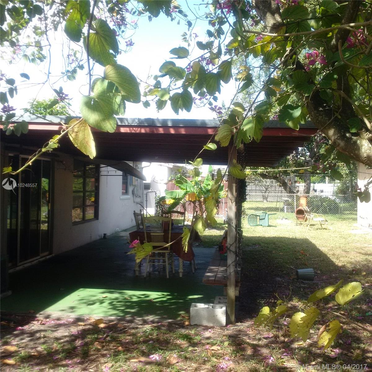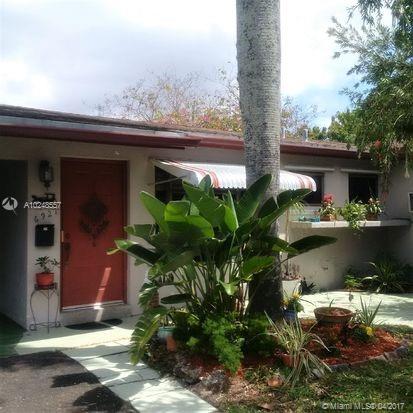 Shady & spacious '50's Hollywood home on 7,200 ft. lot. Elevated driveway leads to carport and large 1,552 sq. ft., 3/2, with fenced back and side yards, covered patio, and royal palm, bottle brush and orchid trees. This pretty property offers a very special "family home" energy, and includes original terrazzo floors, tiled bathrooms, and solid wood kitchen cabinets, with lots of windows, sliding doors from Florida room to back patio, plus a private entrance for optional "in-law" apt. The property sits elevated from the street, with several flowering and shade trees and enough fenced backyard space to add a pool past the covered patio