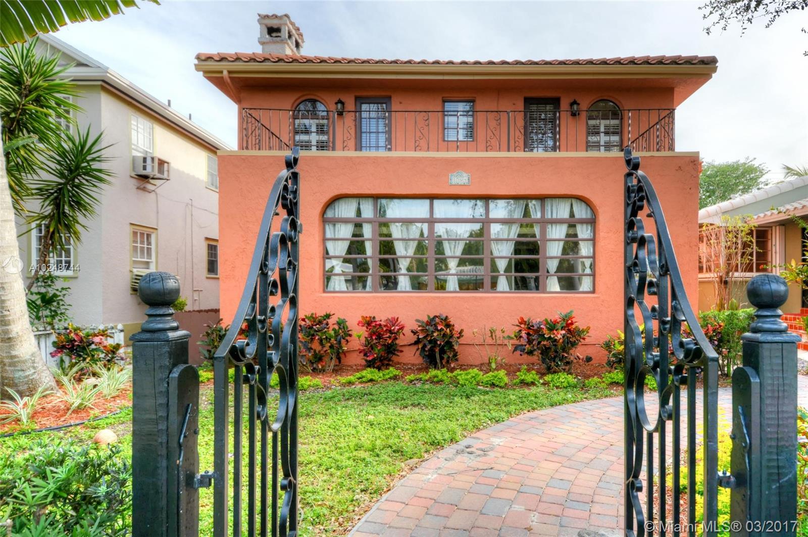 Minutes from the beach & Downtown Hollywood. Stunning completely renovated historic Hollywood home. A total of 7 Br + Den & 6 Full bath & 2- 1/2 bath. Main House Features 5 Br & 5 1/2 BA + 2 story rear cottage which can be rented. Main House has a completely upgraded kitchen complete with granite counter tops, stainless steel appliances, fireplace, arches, French doors, 2 decks upstairs, large pantry, formal dining room, professionally landscaped and gated entry. The back house has a separate water meter. Include attachment with all offers.