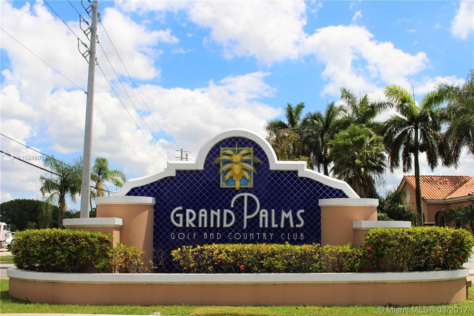 Fantastic opportunity to purchase least expensive unit in the Courtyards, Grand Palms Golf Resort. Master Bedroom on 1st floor, no stairs to climb! Great for first time home buyers or vacation home. Priced to move quickly, home needs some updating. 5 minutes from I-75, Whole Foods and Costco next door, 25 minutes to FLL and MIA, A+ schools and great shopping and restaurants at Pembroke Gardens.