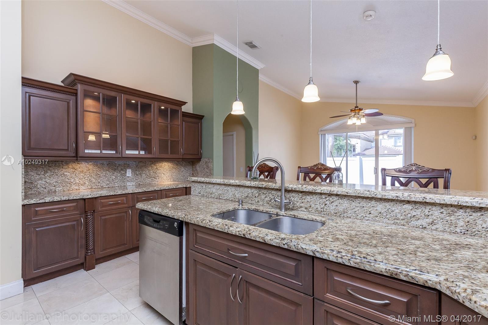 Beautifully remodeled home in gated community of Walnut Creek! This meticulously maintained 3 bedroom, 2 bath home boasts a spacious open floor plan, gleaming marble floors, and vaulted ceilings. Bright kitchen with stainless steel appliances, breakfast bar, and granite counter tops! Large master bedroom with en-suite. Nice private brick patio off living room. Conveniently located near major expressways, great schools, shopping and more. Amenities include gym, pool, parks,and much more! Contact Frank Rodriguez at Universal Mortgage and Finance for Pre-Approval 305-986-0693