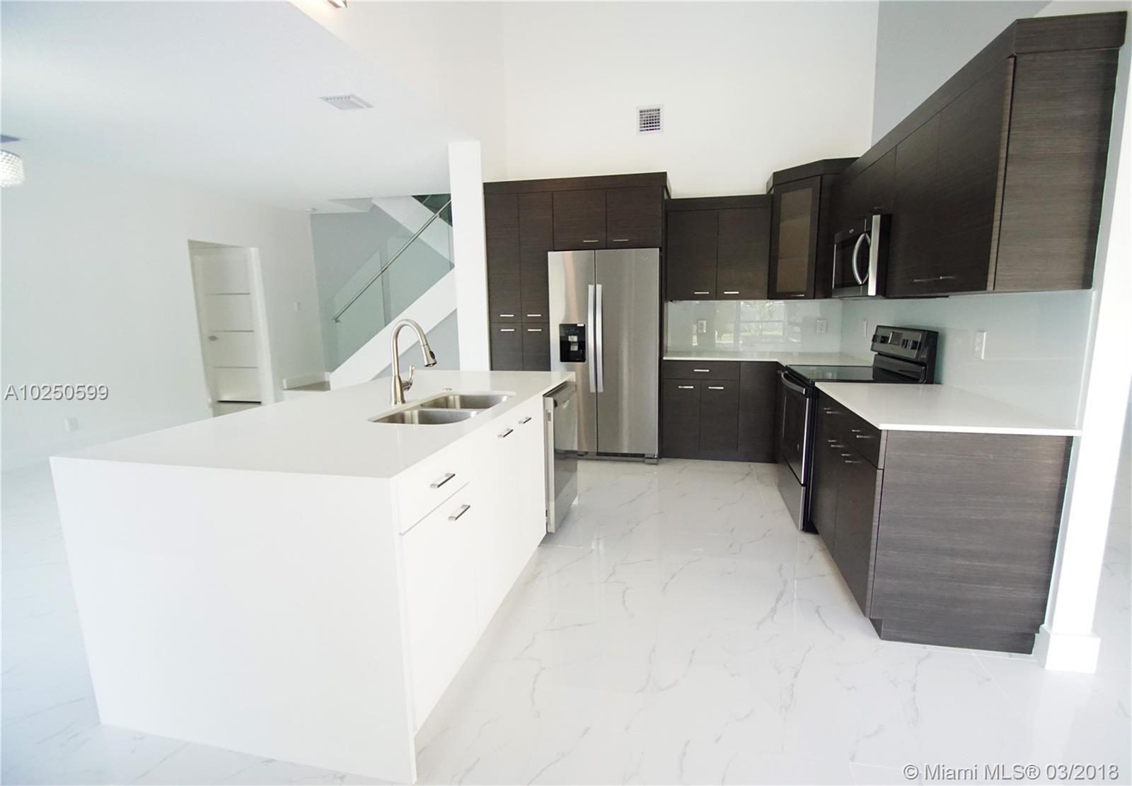 5 Bedrooms, 3 Full Baths One of a kind fully renovated two-story home w/ 2 car garage & POOL. Professionally decorated w/ Tiles & Laminate floors. Modern kitchen w/ quartz counter tops and NEW stainless steel appliances. All Bathrooms remodeled w/quartz tops. Large Layout w/High ceiling. Custom doors and glass railings. Large Master Bedroom, NEW fresh Interior/Exterior Paint. Low Association. Spacious & large private backyard with Pool. TURN KEY Ready.