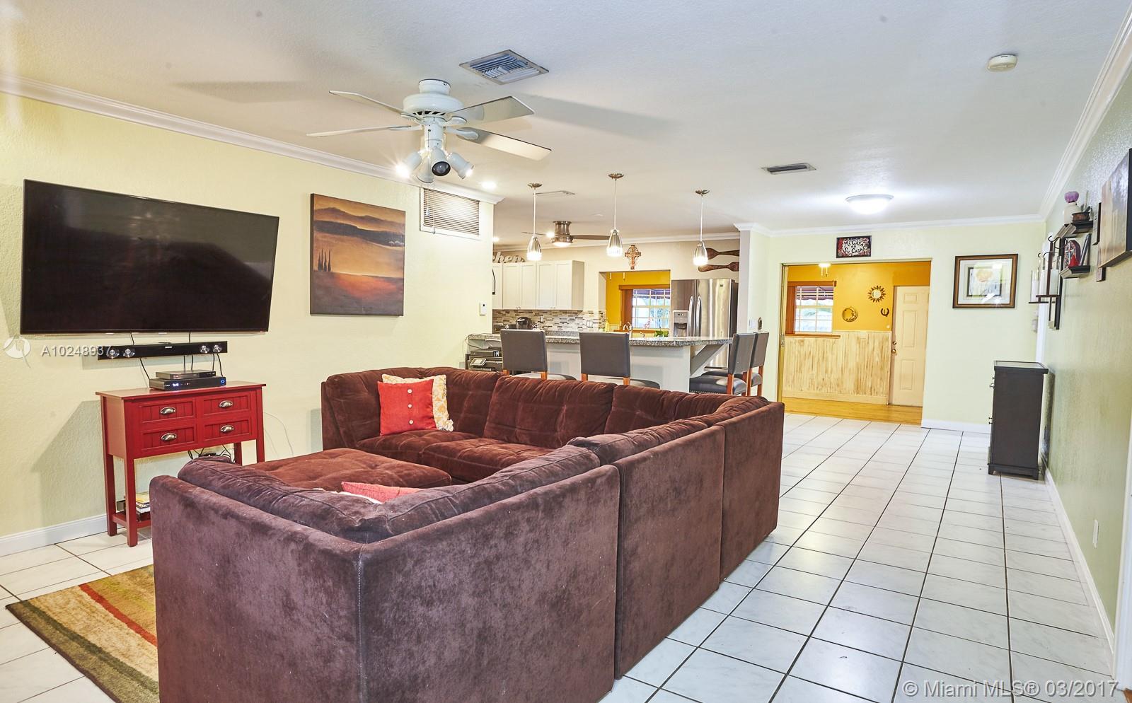 OPPORTUNITY A-GO-GO! This home delivers the OPEN SPACE CONCEPT, LRG ENTERTAINING KITCHEN & LRG BACKYARD buyers are looking for. Feat. 3 beds/2 REMODELED BATHS, family RM, covered patio, open porch, laundry room, paver circular driveway. Well planned 2017 KITCHEN that opens to the liv. area, wood cabs, NEW CALEDONIA granite, SS appliances and lots of cooking counter space. LRG open backyard designed w/ FL outdoor liv. in mind, pond w/ waterfall, herb garden, fruit trees, fire pit and fenced. ROOM FOR POOL!