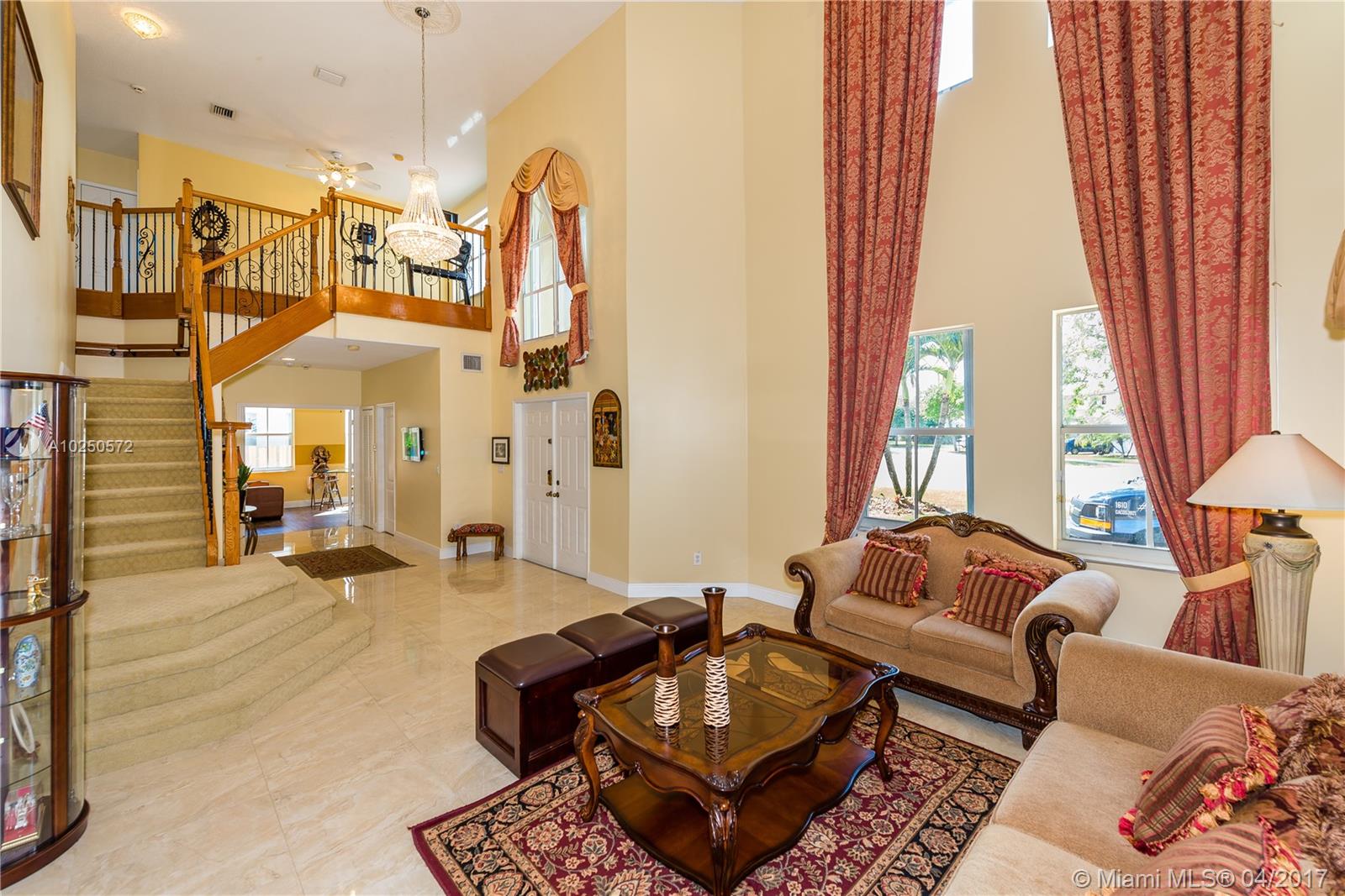 Elegant home sits on an oversized corner lot & cul-de-sac; it’s breathtaking from the minute you drive up. Step inside & you are greeted by soaring 20 ft. ceilings in the foyer & formal living room, 24”porcelain tile floors leads to the oversized family room & kitchen, with granite & SS appliances. 1 bedroom & remodeled bath on 1st floor. Go up the impressive staircase with wroth iron banister where you will find a large loft, all oversized bedrooms & baths. Custom window treatment, Accordion shutters & more...Entry & Dinning Chandeliers don't convey.