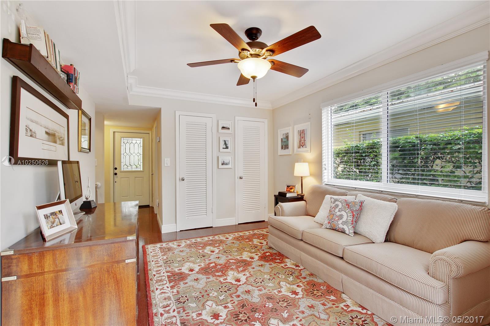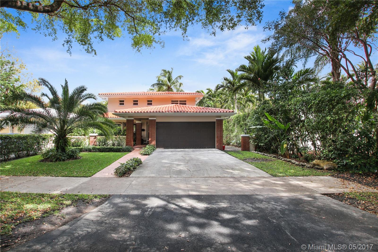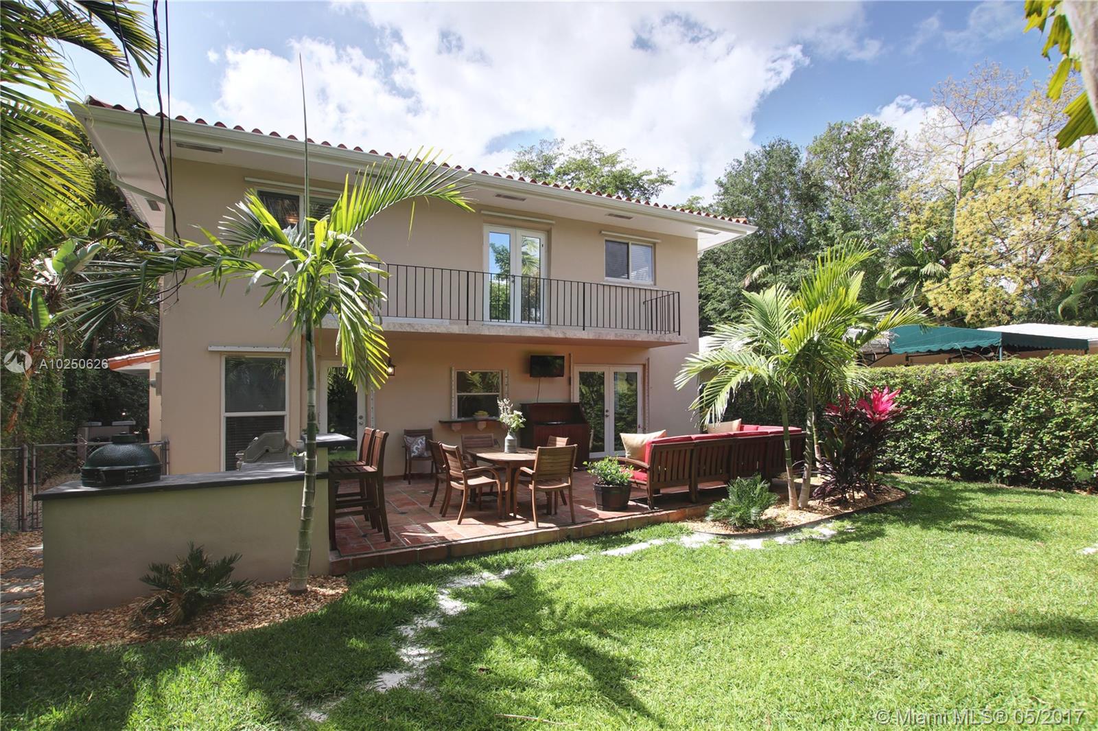 In much desirable Coral Gables, this home exudes charm & comfort with attention to details. Downstairs rooms easily transition from living room to recently remodeled kitchen to den/office & outdoor entertaining area. The fenced back patio is perfect for family fun & guests to relax w/built-in BBQ/snack bar/sitting space. The light/bright second floor features master suite w/walkin-in closet & designer bath + 2 other bdrms. Appliances including a/c, have been recently upgraded. Must see to appreciate!