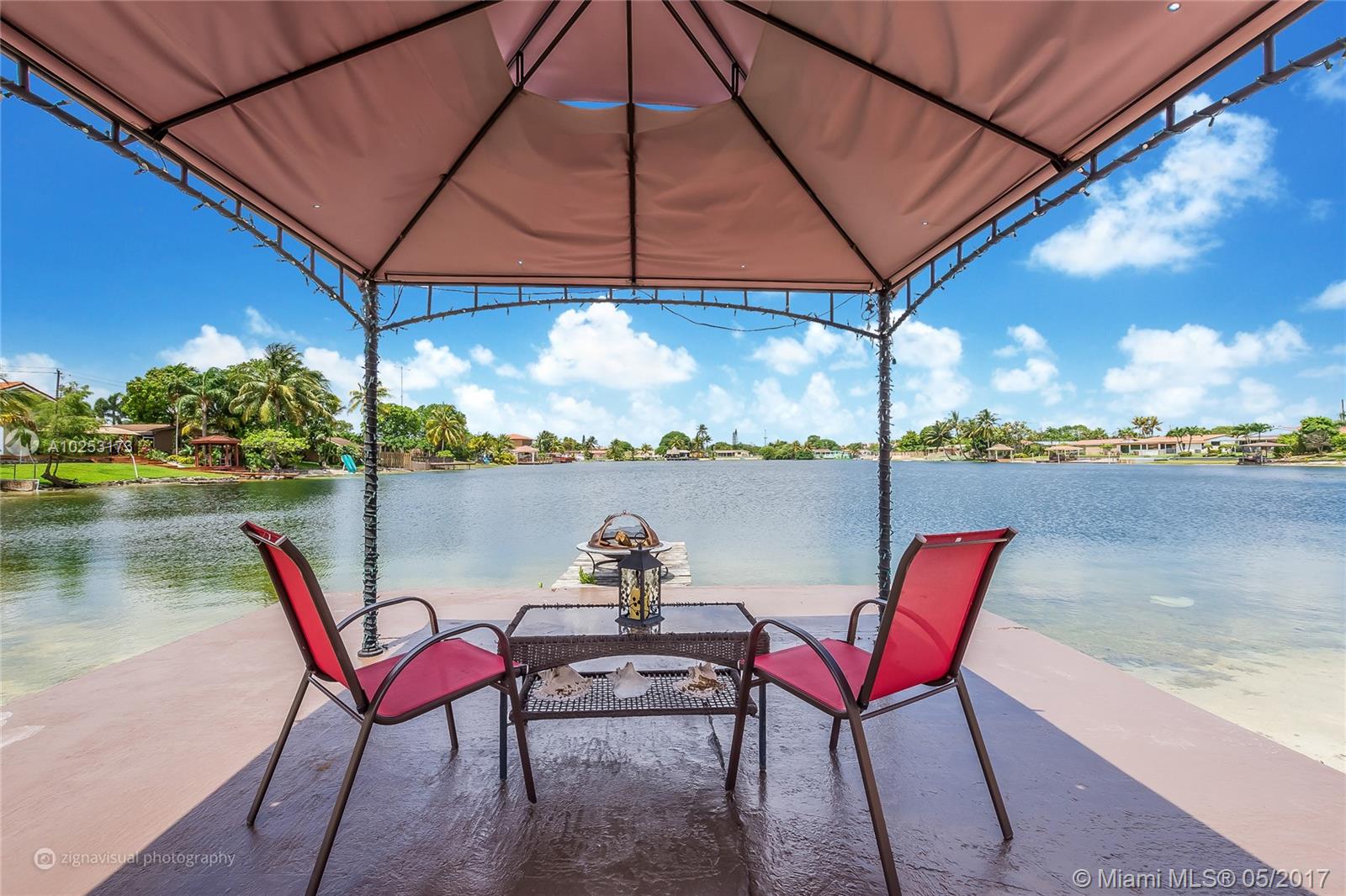 Single Family 4/2 - 2,965 SF Lake Front Home. Private Beach. Concrete Dock. Gazebo. Den / Library / Office. Bar. Large Family overlooking beach/lake. French Doors. Remodeled Kitchen & Bath. Stainless Steel Appl. Covered Terrace. Jacuzzi. Covered Car Port. Circular Drive Way. Spanish Tile Roof. Accordion Shutters. Over sized lot 10,800 SF. Close to Palmetto Expy, Hospitals, Mall, Schools. Special Features; Spacious Interior, Large Yard, Private Beach with Dock = Entertainment / Water Sports.