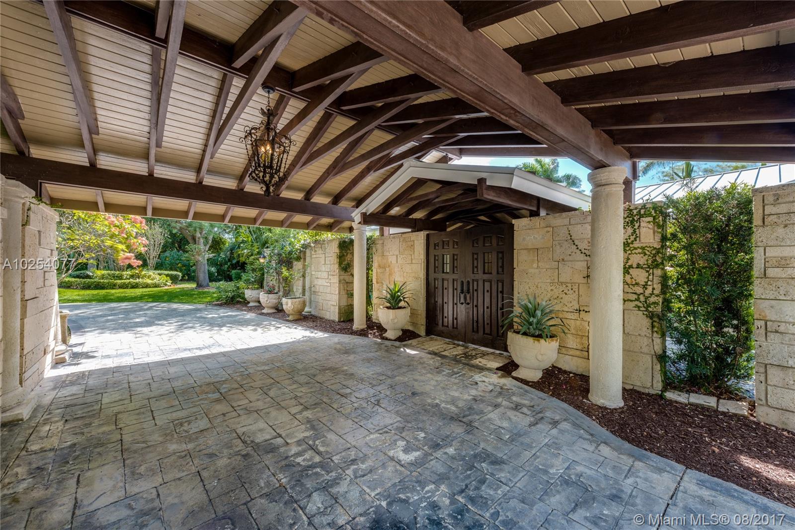 Elegant & updated Pine Bay Estates home w/picture-perfect curb appeal. Impressive double door entry into open courtyard sets the stage for impressive entrance. Gourmet kitchen w/bar & eat in area. Luxurious master suite w/sitting area, gym & spa like bath. Large family room & even large Florida room w/floor to ceiling glass wall overlooking pool/patio. 6BD/6BA includes a guest house with 1BD/1BA & large family rm. 2 CG & 2 car porte cohere, full generator, Koi Pond & lush gardens.
