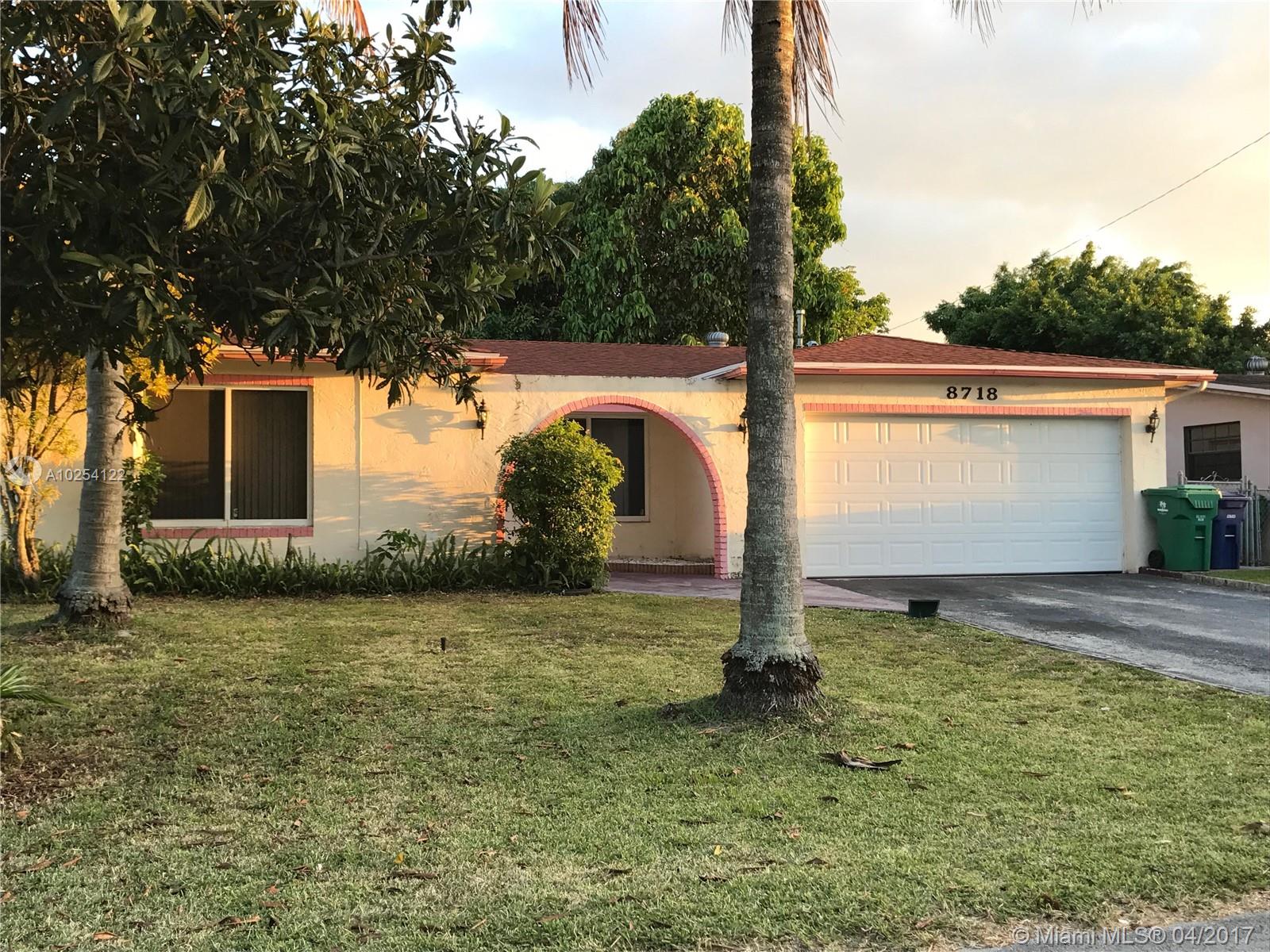 Huge family room, tile floors in living and bathroom area, as well as wood floors in all 3 bedrooms and living room. Backyard is gated, includes a covered porch, fruit and palm trees, and has plenty of room for dogs! Impact windows and new exterior doors installed throughout the house. Close to major roads, playground, and shopping areas. Really nice quiet 3 bedroom property, ready to move in right away.