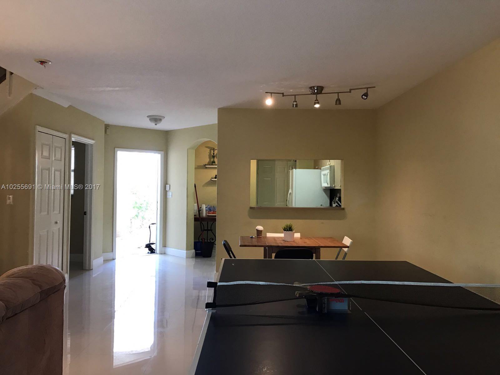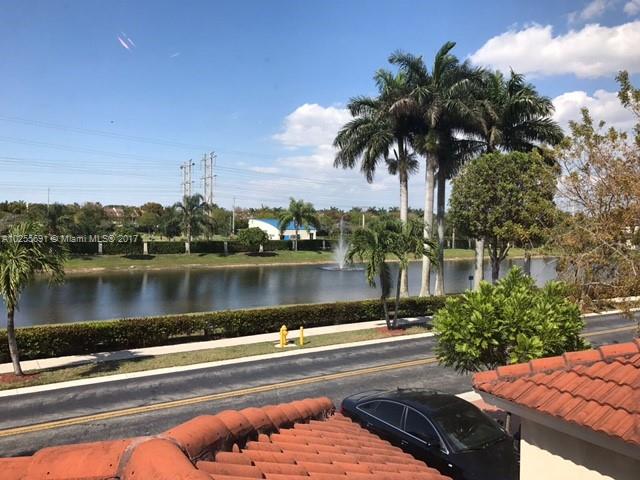 BEAUTIFUL AND SPACIOUS TWO-STORY LAKE VIEW/FRONT TOWNHOUSE AT DIMENSIONS DORAL WITH 3 BEDS, 2.5 BATHS, DEN, LARGE BEDROOMS, FENCED GOOD SIZE BACKYARD AND 1 CAR-GARAGE PLUS 2 PARKING SPACE ON DRIVEWAY. OPEN FLOOR PLAN, PORCELAIN AND LAMINATED WOOD FLOORS. ACCORDION SHUTTERS, A/C LESS THAN 3 YEARS. GREAT LOCATION AND GATED COMMUNITY. NEXT TO THE PARK, CLOSE TO SCHOOLS, SHOPPING MALLS, TURNPIKE AND 836. PET FRIENDLY. UNIT IS RENTED MONTH TO MONTH. VERY COOPERATIVE TENANTS. ASSOCIATION FEES ONLY 133/MONTH.