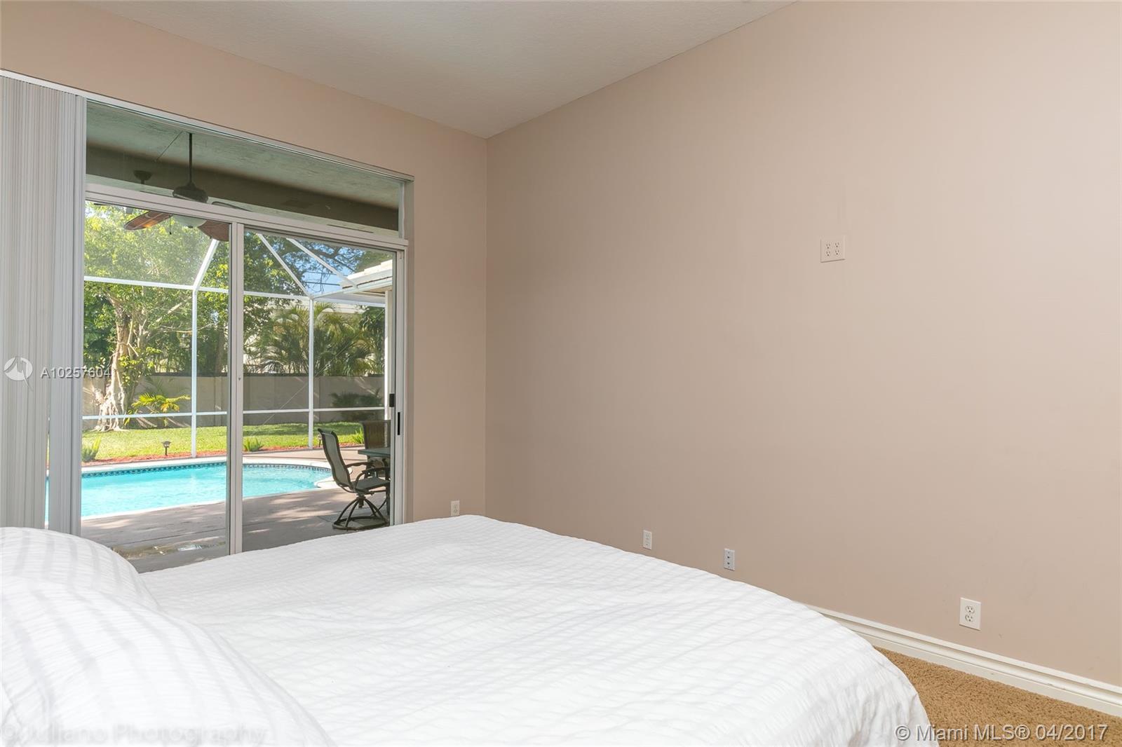 STOP LOOKING AND START WRITING AN OFFER. Impecable 4 bedroom 3 full bathroom SINGLE STORY 3 Car Garage Cul-De-Sac pool home with oversized 17,000+ sqft lot, in the highly regarded 24/7 LIVE GUARDED Carriage Pointe Estates. Custom Kitchen with HUGE granite Island and hi-top bar. This one of a kind property, with open floor plan, and screened in pool deck with large patio, has paver driveway parking for 6 cars and is perfect for large families and entertaining. Make an appointment and put yourself in a position to own this fantastic home TODAY.