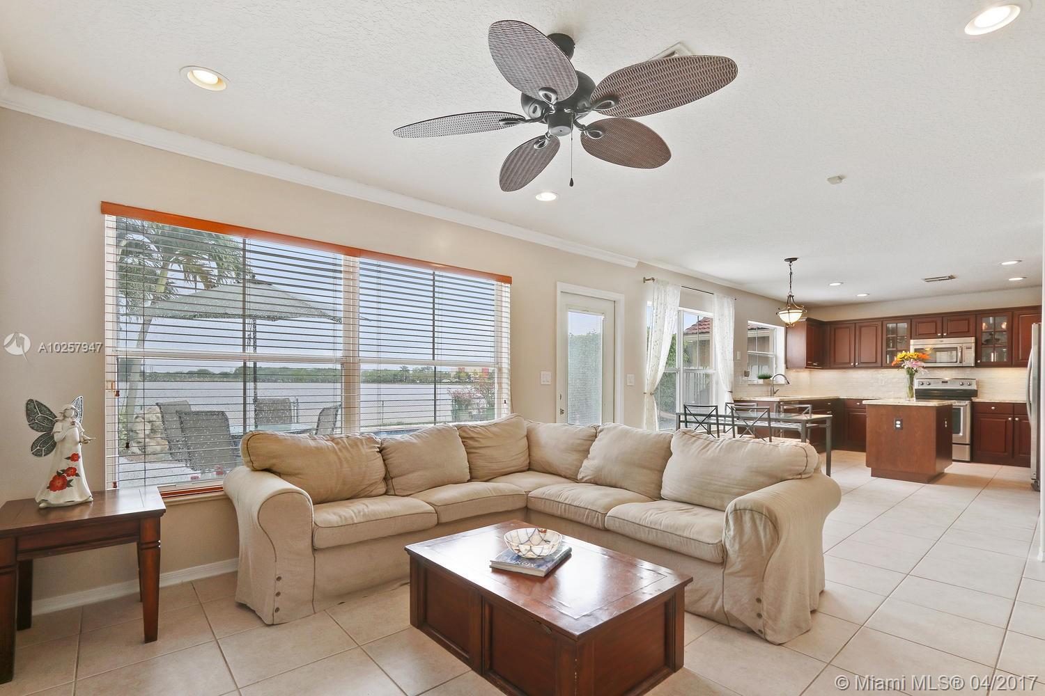 Superb tropical paradise: remodeled 4 Bedroom, 2.5 bath waterfront, pool home in gated Hidden Lake community. Beautiful free form pool w/waterfall feature, fenced yard overlooking big lake, beautiful sunsets. New bathrooms and gourmet kitchen w/ wood cabinetry, granite counters,stainless steel appliances, kitchen island. Upgrades throughout, newer A/C. Top schools: West Broward HS, Silver Trails Middle, Chapel Trail Elementary plus Somerset Academy right outside community gate. Close to Highway 27 for easy commutes in every direction.