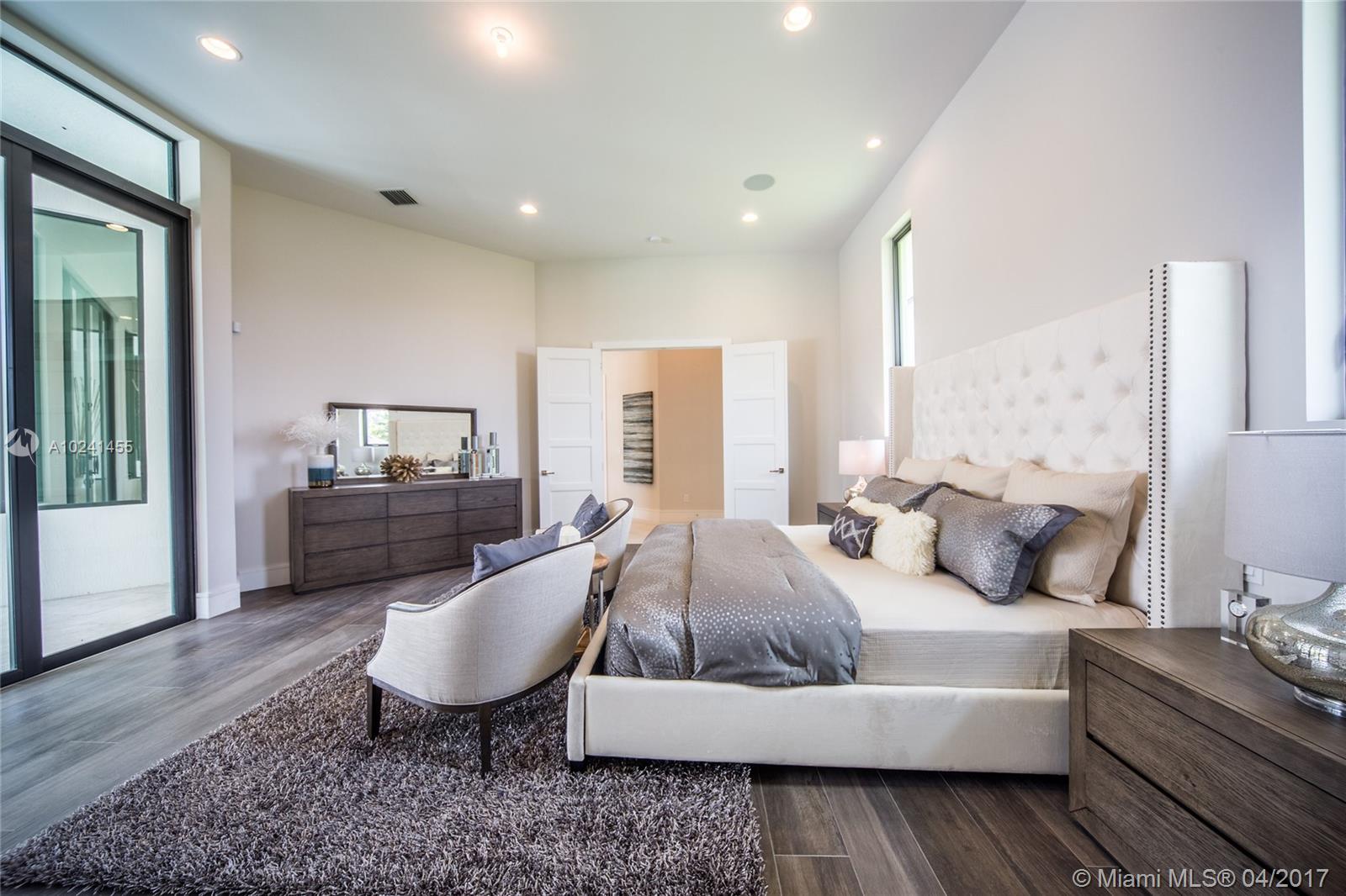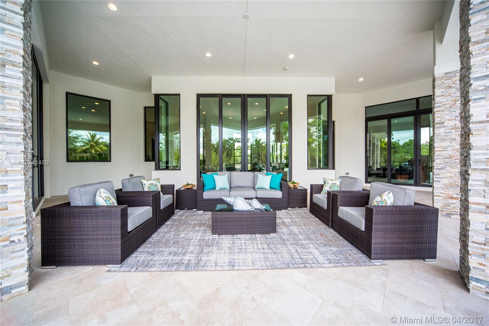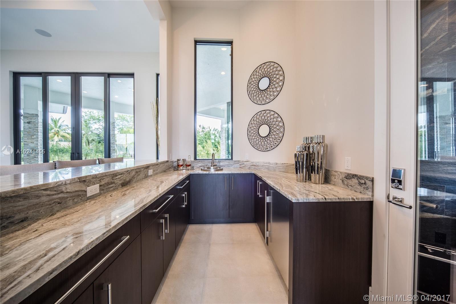 This brand new construction, contemporary ranch design (by architect Maurice Menasche) offers a very distinguished style with sweeping 14ft ceilings, 5 bedrooms (5 suites) 6 baths, 2 half baths, large office, plus separate entertainment area upstairs which can be converted to media room, guest suite or 6th and 7th bedrooms. This majestic home boasts highly desirable designs and finishes with Sub-Zero & Wolf appliances chef's kitchen, uniquely designed baths, full bar, wine room, tankless gas water heaters, impact glass, structured wiring, central vacuum & an elegant outdoor pool area w spa and summer kitchen. Welcome to a peaceful and private enclave of 8 individually gated & custom designed estates. Come live in a country setting in the picturesque equestrian area of Southwest Ranches.