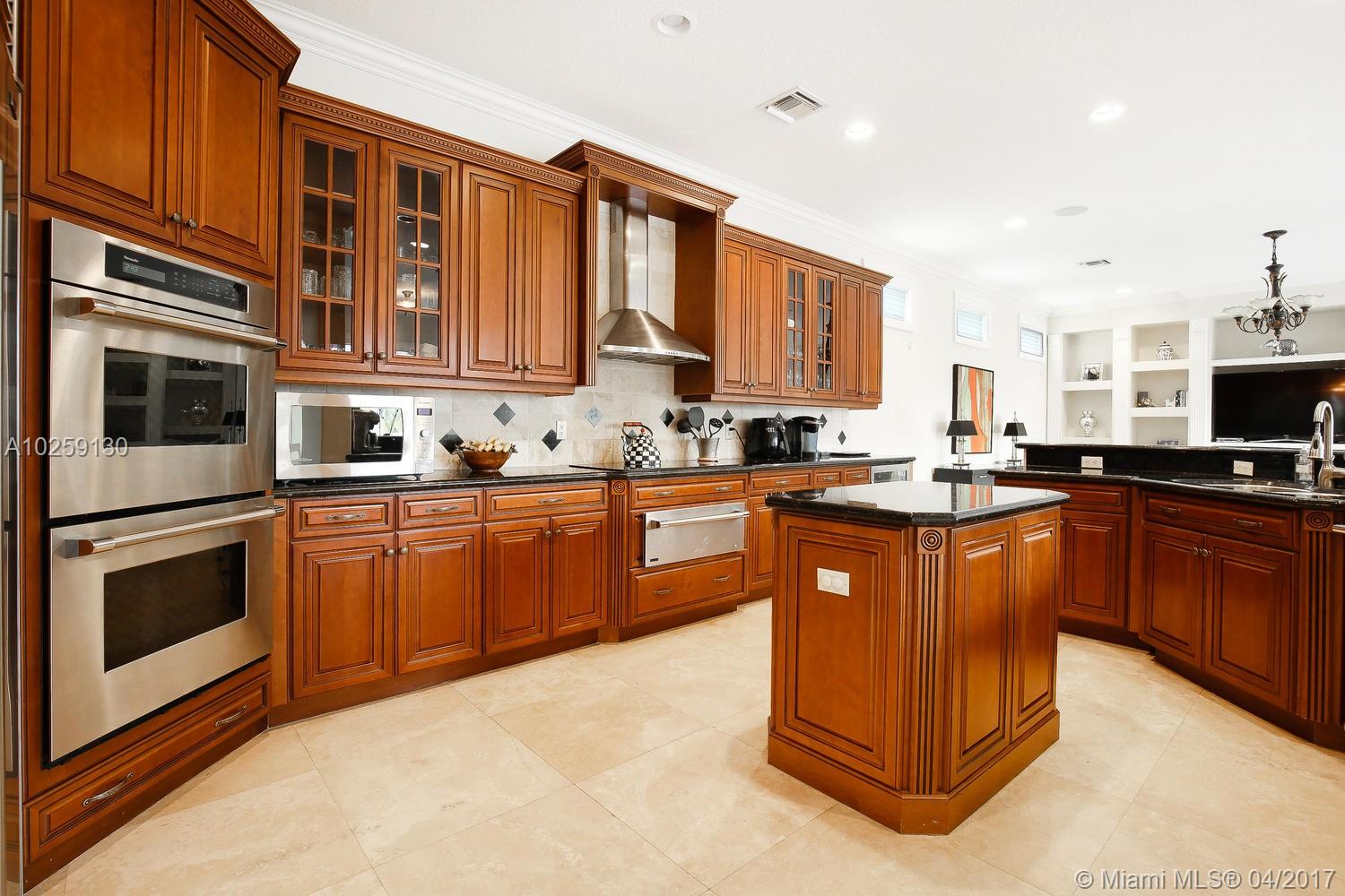 Superb 6 Bedroom, 5.5 Bath, courtyard pool home in the exclusive double-gated Enclave of Grand Palms, Pembroke Pines' premier golf resort community. Upgraded luxury touches throughout. Gourmet eat-in kitchen, wood cabinetry, granite counter tops, and stainless steel appliances including double wall oven. Impact windows, cathedral ceilings, marble floors, summer kitchen, pool safety fence, gorgeous custom iron staircase. Spacious loft with built-ins/office. Private guest quarters with full bath overlooking the pool. On the Grand Palms Golf Course, walk to clubhouse w/restaurant, bar, hotel, fitness, tennis. Grade A Pembroke Pines schools. Close to I-75 for easy commute in every direction, extensive shopping, dinning, and entertainment options nearby.