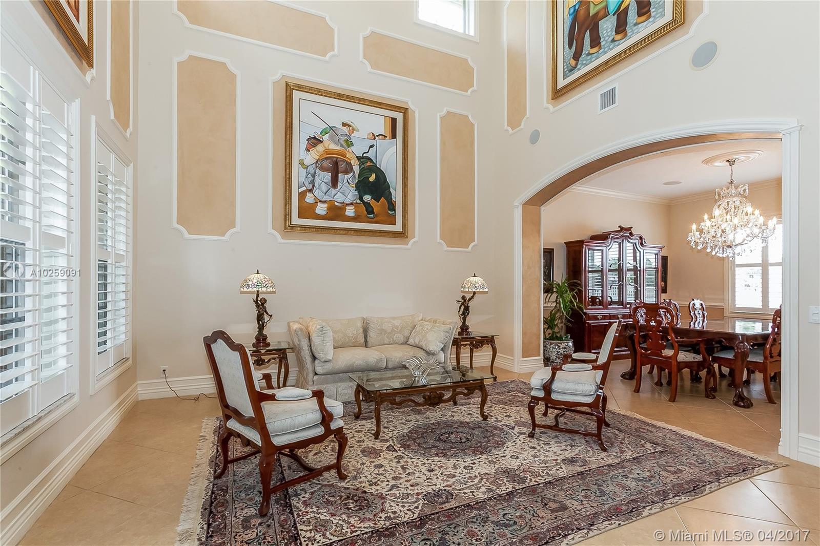 Stunning home of seven bedroom plus office offers amazing water views which surround the one half acre cul-de-sac lot. The grand entry with volume ceilings and elegant custom staircase welcomes you home! Luxurious master bedroom with sitting area features a 32 ft balcony so you can enjoy the breathtaking views from your private suite. Spacious covered patio, open pool and generous fenced yard adds to your outdoor experience. Attached guest house is a 1/1, perfect for extended family, additional office or gym. Circular driveway leads to tiled and air conditioned 3 car garage. This house has it All!