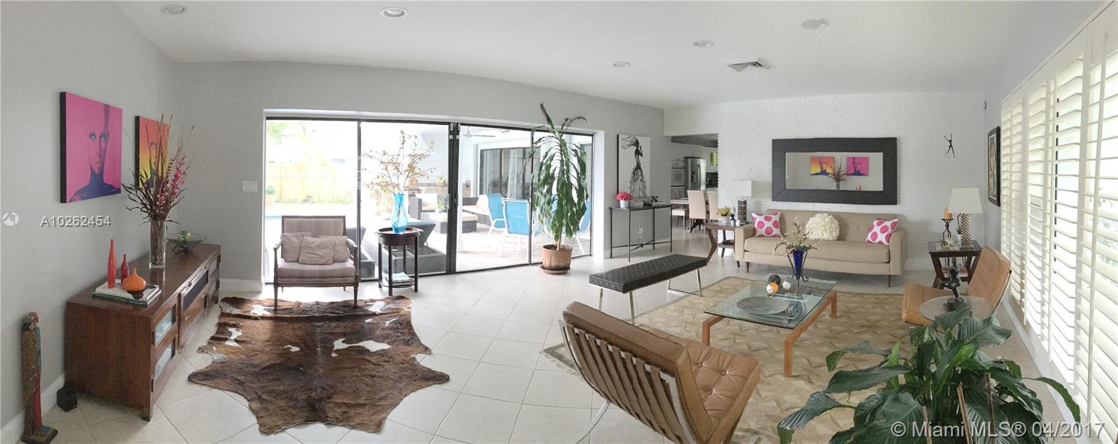 Upgraded Family home with 4 large bedrooms and 3 full bathrooms. Located in desirable Coral Ridge neighborhood. Open floorplan providing stunning views of pool area from most of the house. Designed with entertaining in mind it features large kitchen with island and white cabinets. Remodeled bathrooms. Refinished Pool and paver backyard. New refrigerator, microwave, and 5 ceiling fans. 5-year-old air condition and 7-year-old tile roof, hurricane windows or shutters for all openings.