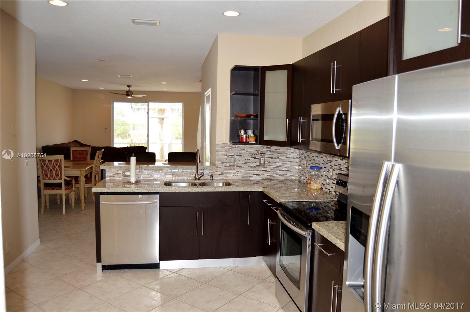 Totally remodeled from Top to Bottom! Modern and clean looking unit. Gorgeous kitchen with light granite, dark cabinets and stainless. Beautiful flooring with high end laminate up the stairs and second floor. Spectacular private preserve view. One car garage, hurricane stutters. Gated community with pool and play area. BEST WESTON SCHOOLS! This is a highly upgraded home with a beautiful view...owner will only consider full price offers not contingent on appraisal.