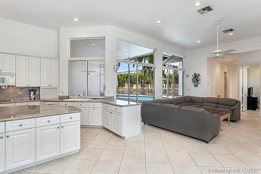 Custom house on 16,000 sq ft pie shaped lot on water, in back of cul-de-sac, located in Plantation Palms, 24 hr guarded community. Split bedroom plan. 10'-13' coffered ceilings. Newly updated kitchen. 3 new A/Cs. 35 yr life modified bitumen underlying concrete tile roof. Hurricane shutters. House qualifies for all wind mitigation credits for large insurance discounts. Located minutes from major highways, shopping centers, Las Olas Blvd, Ft Laud airport and beaches.