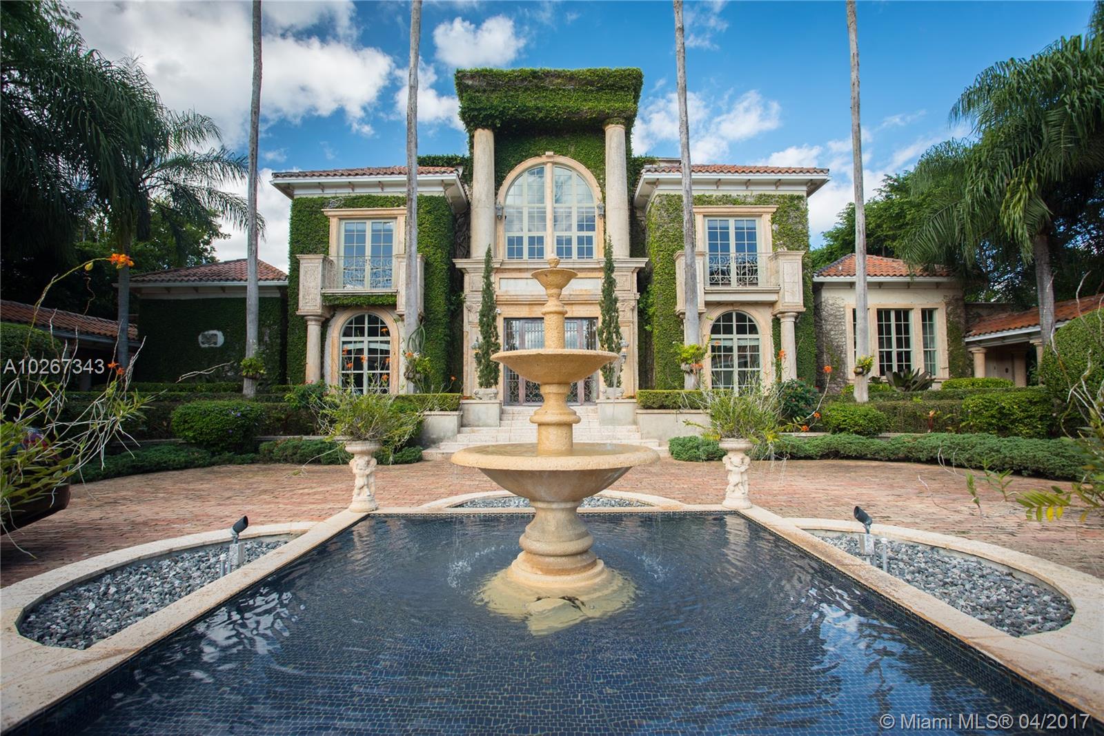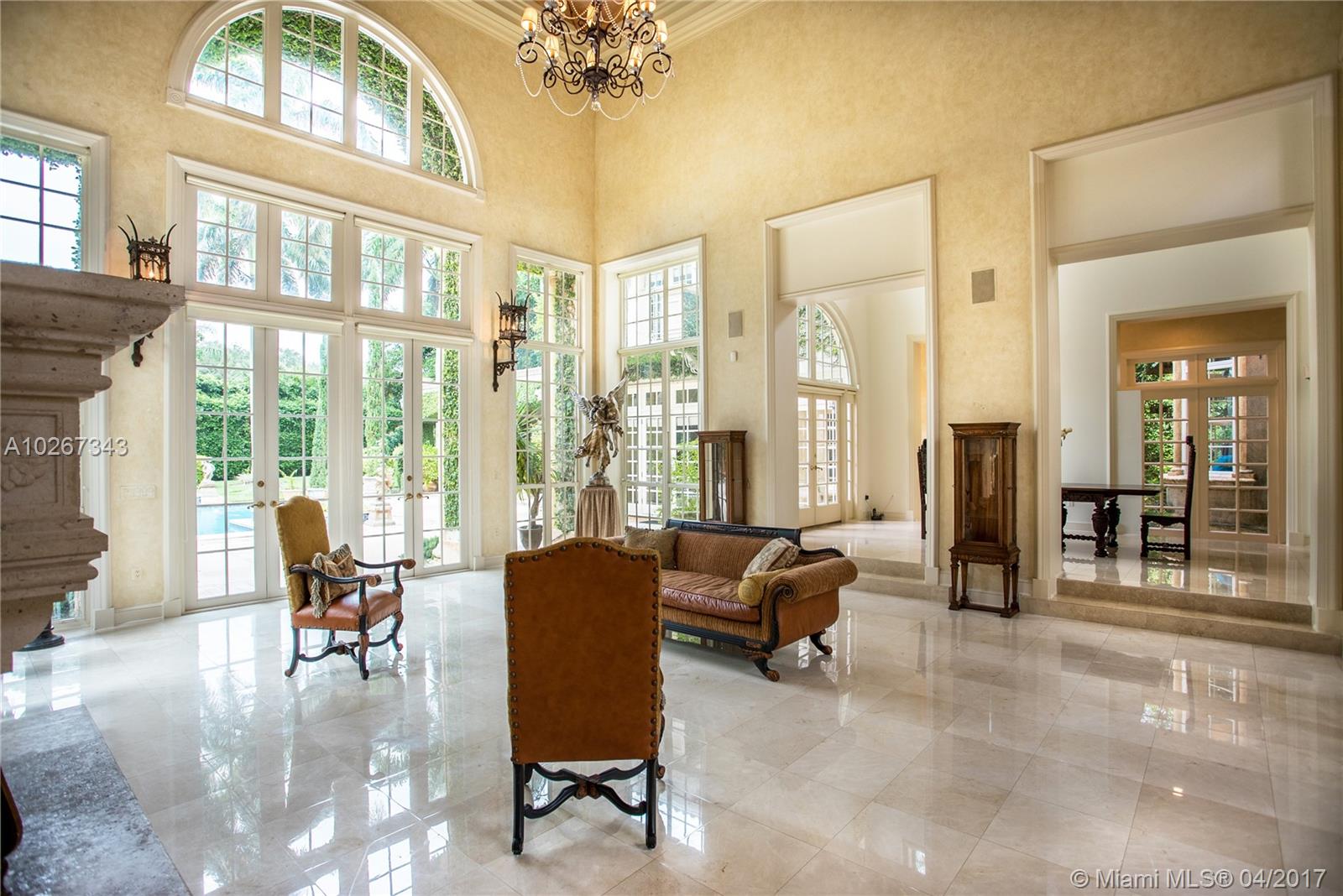 Showcase estate on almost two acres. Long drive to a European inspired house. Entry foyer with pointed arch ceiling, tall windows, and grand double staircase. Formal living room with 35-foot ceilings, double height stone fireplace, and views to the patio, pool and gardens. Master suite features a glass atrium and sitting room. Family room opens out to the large wood beamed covered terrace and barbeque. The house sits on one lot, and the other lot is platted and sub dividable. Best on market