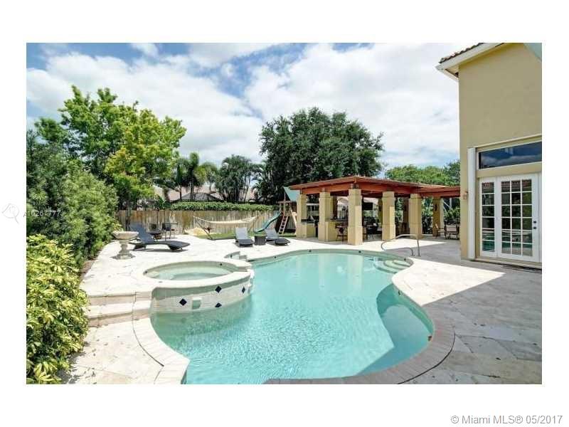 Welcome to your beautiful new resort-style home! 5BR/4BA plus Loft with 3-car attached garage and so many upscale amenities such as Heated Salt Water Pool with New Control Panel, Full Summer Gourmet Kitchen under Custom Covered Detached Patio, Mosquito Misting System, Playground. Stunning flooring throughout with a beautiful kitchen open to expansive living area and dining room. Lovely master suite on first floor along with guest bedroom. High-end finishing throughout, absolutely gorgeous !