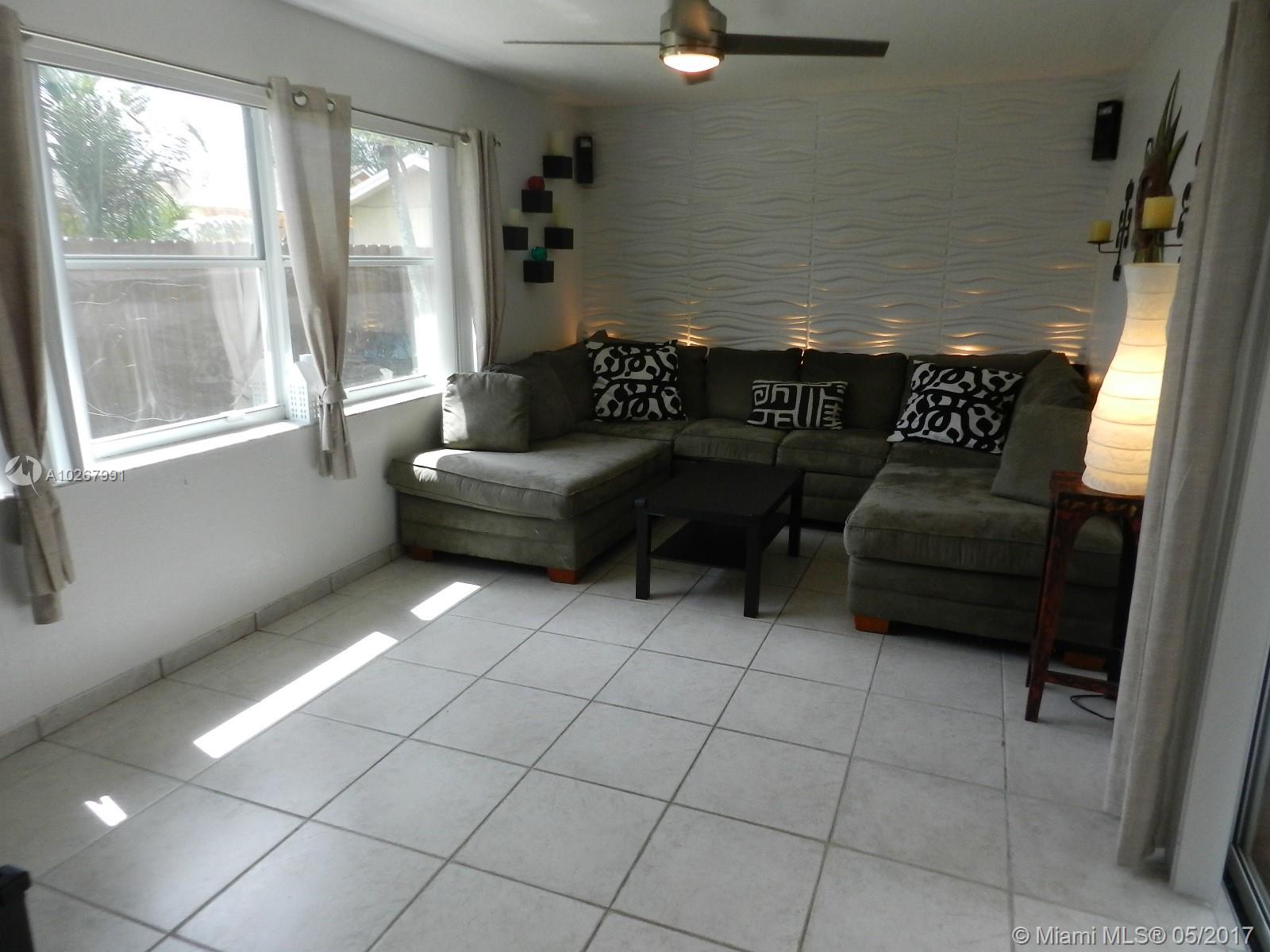 Wow! Gorgeously remodeled pool home in the heart of Pembroke Pines & in move-in condition! Stunning kitchen remodel with espresso cabinets, soft close doors and drawers, stainless steel appliances and tons of cabinet/counter space! Both bathrooms upgraded to the max - 2nd bath with cabana door to pool! Real hardwood floors in living/dining room - neutral tile throughout rest of home (no carpeting)! Relax on your covered patio overlooking the inviting pool area! Pool equipped with salt water chlorination system and baby fence! Yard on either side of the home with your own mango tree! Other features include spacious rooms, split floor plan, snack bar, AC replaced 2013, circular driveway, recently painted exterior, 4th bedroom currently used as office but there is a door, closet, and window.