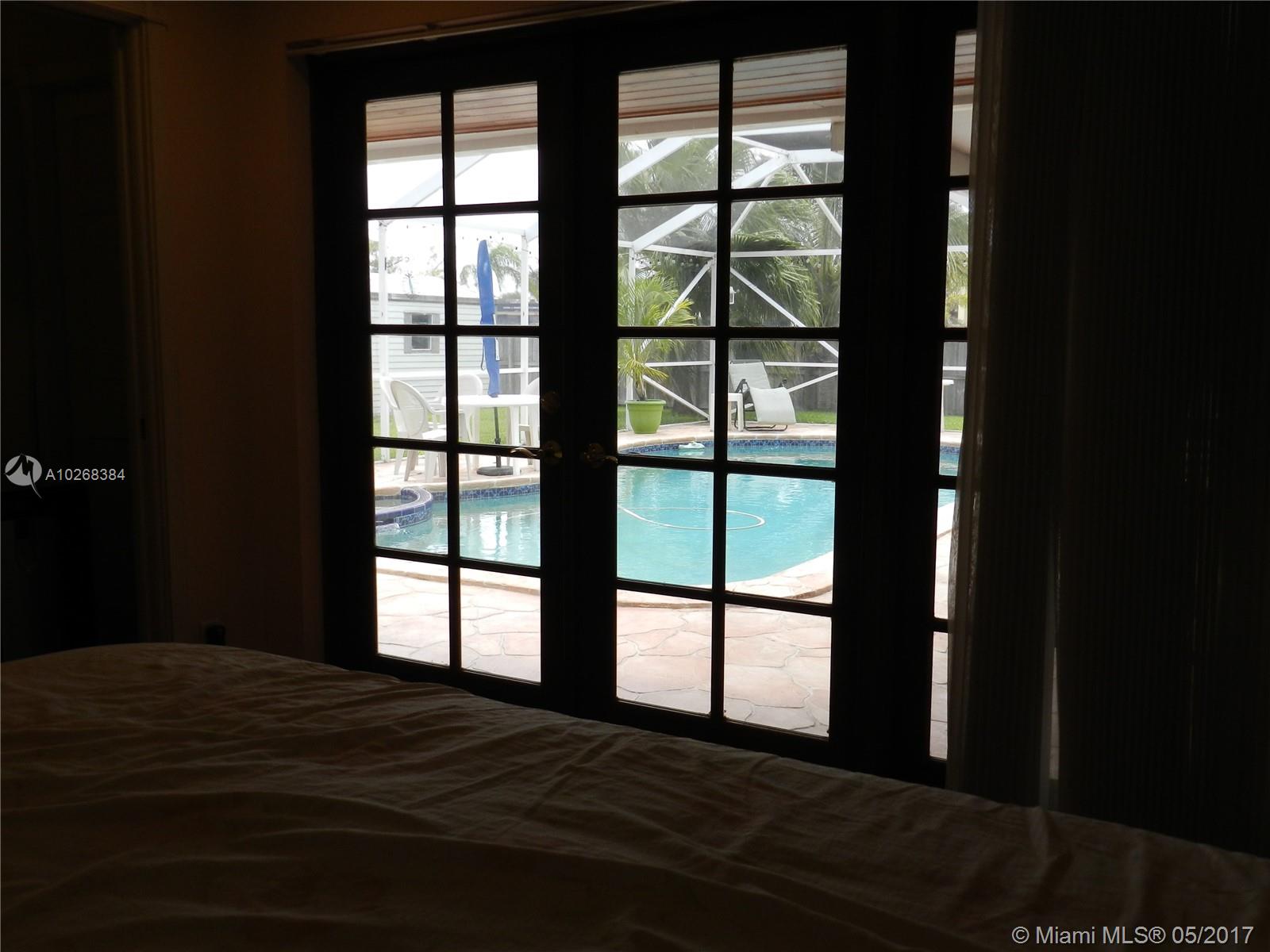 PRICE REDUCTION. Fabulous move-in ready executive home with 2 master suites in Hollywood Hills. 4 bedroom/3bath, 2 car garage; remodeled w/numerous upgrades. French Doors lead out to a mansard screened heated pool, hot tub & entertainment area with wet bar, fridge, stereo system and lighting. Bonus: detached bldg with a/c & electric. Kitchen with undermount lighting, granite countertops, ss appliances, wrap around bar. Built-in lighted china hutch and buffet with slideouts. Built in computer desk area in the dining area. Large fenced corner lot w/ tropical trees; across the street from elementary and high school. Brick paver circular front driveway and side garage driveway. Seller motivated