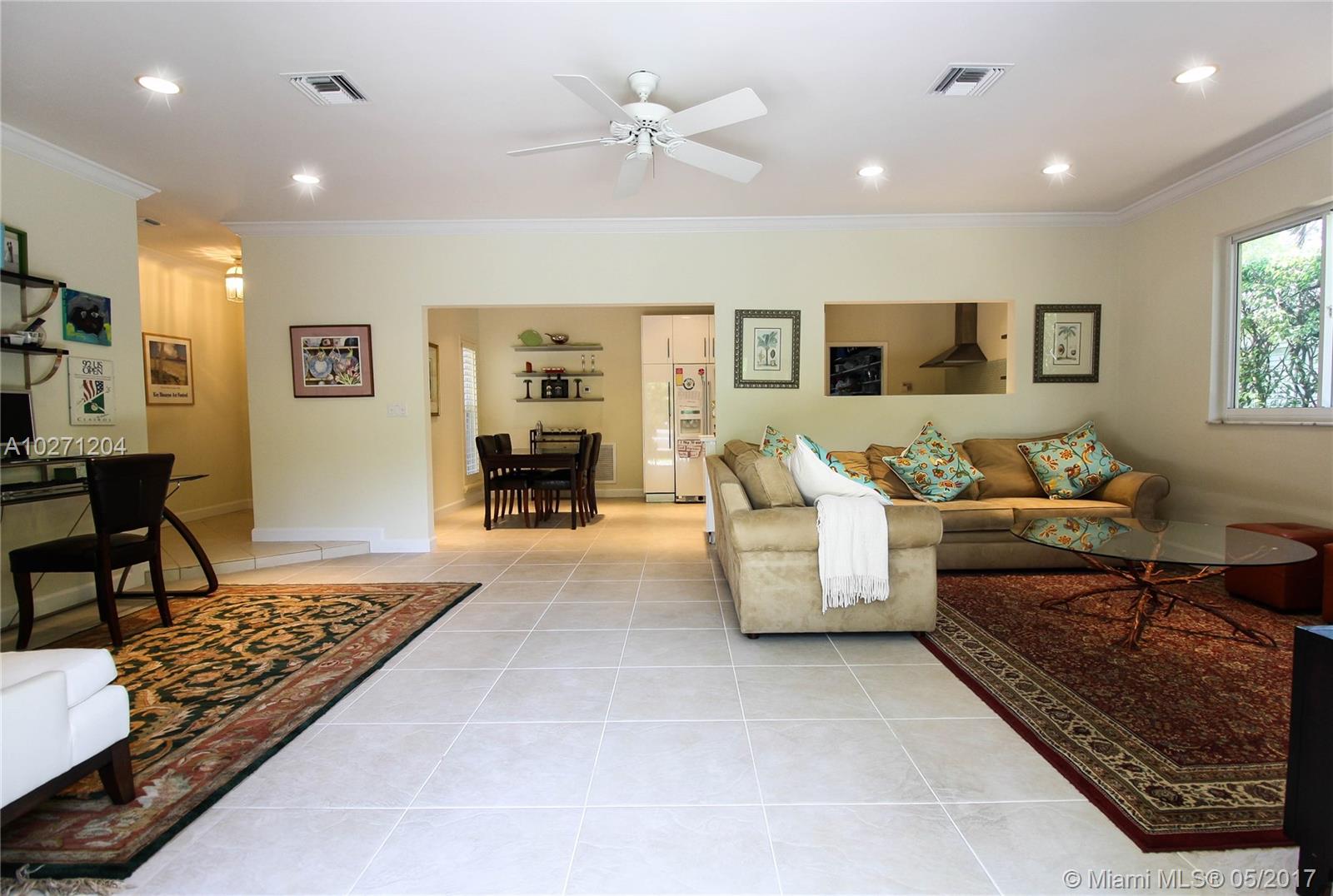Updated 4BRI2BA in fantastic location in the heart of South Gables. Open floor plan with eat-in kitchen and great room. Move-in ready with impact windows, new AIC, and remodeled kitchen. Fenced-in backyard features spacious patio and lush landscaping. Walk to parks, restaurants, U-M, and Metrorail.
