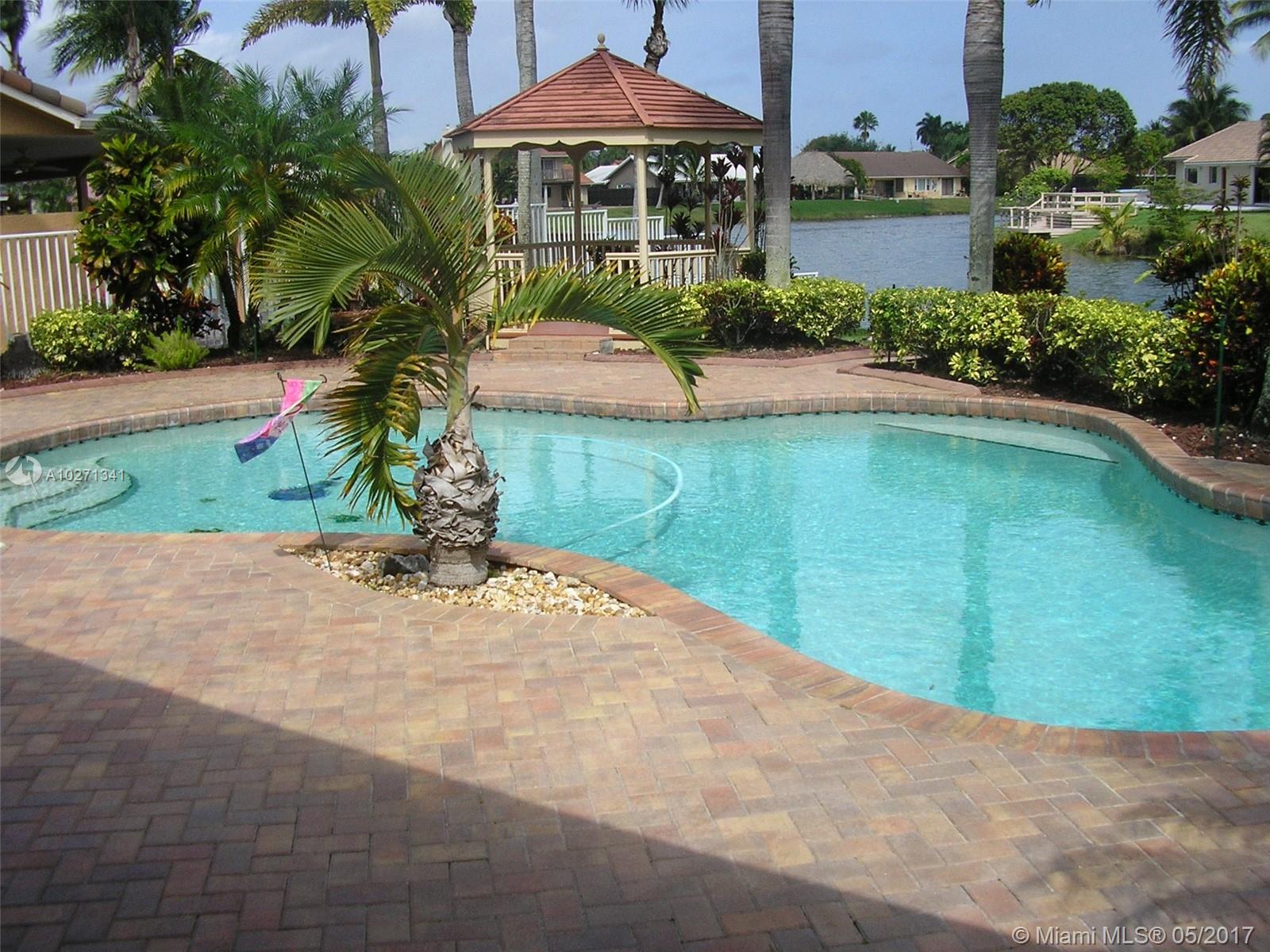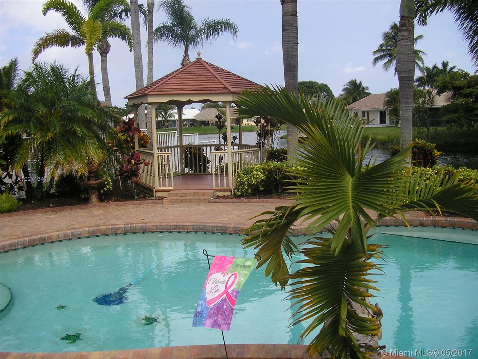 Remarkable!! Owners spared no expense. You can prepare a banquet in this Spectacular Gourmet kitchen w/Viking appliances, six burner gas stove, double oven, double drawer refrigeration in enormous island w / glass pendant lighting & travertine flooring overlooks family area & views of beautiful outside Tropical pavered patio w sparkling pool, separate in-ground spa, lovely gazebo & lake. This backyard is pretty enough to hold ceremonies or just entertain your family and friends in beautiful surroundings. Master bedroom has huge walk-in closet & master bath is updated to the NINES, really! One bedroom has built in murphy bed that stays. Garage has separate A/C and lots of storage. All this located on cul-du-sac. Top rated schools. Close to commute. Welcome Home to this beauty!