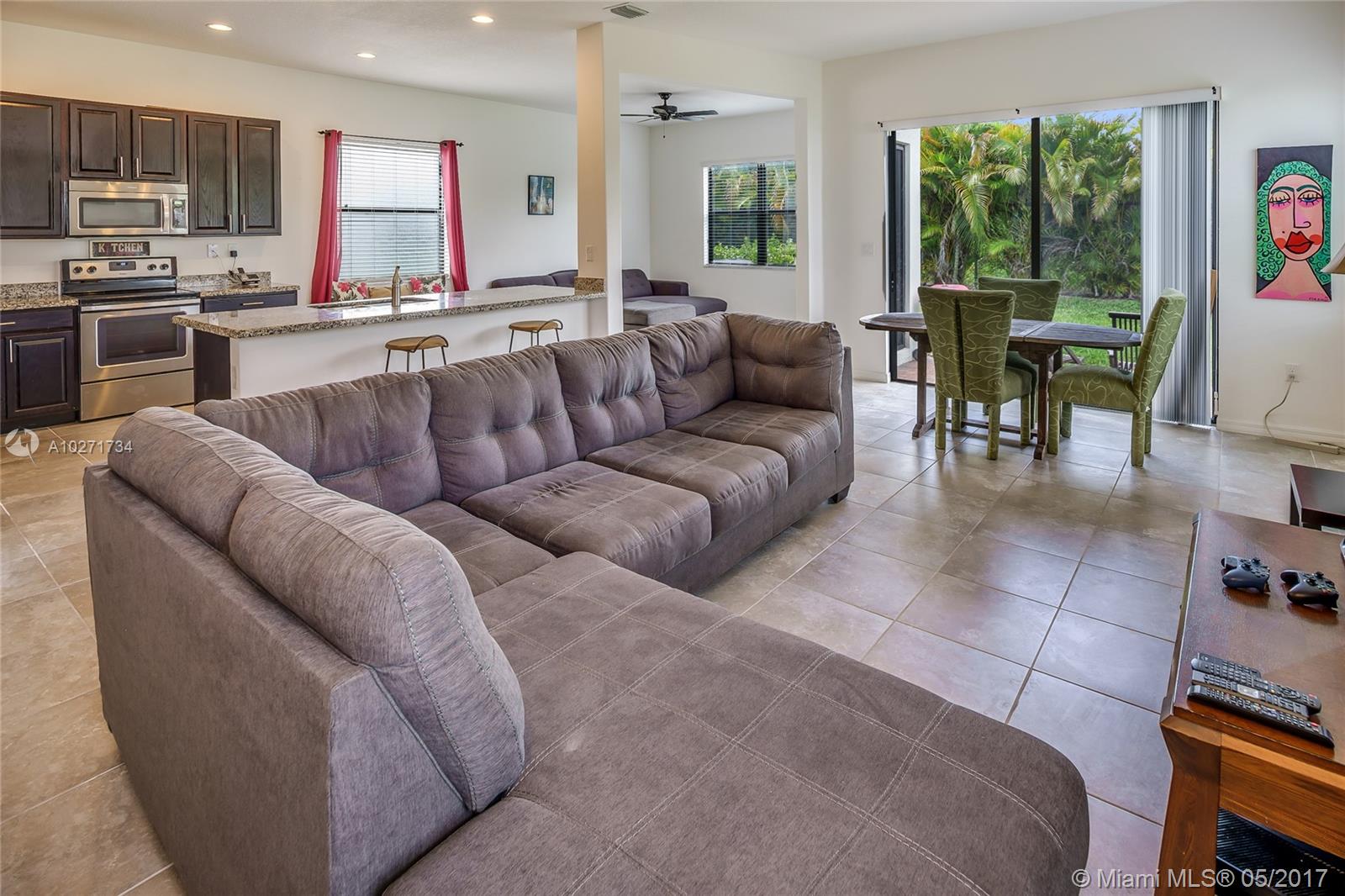 Beautiful 2-story Mediterranean-style home just built in 2015 in a private, gated community on a premium lot w/ a large empty grass area next door & no back neighbors. The house features a spacious, open-concept floorplan w/ tons of upgrades: 10 ft ceilings, lots of windows & natural light, espresso wood cabinetry, granite counters, s/s appliances, center island & cute, built-in sitting area + hardwood stairs, paved driveway, porch & back patio, garage & W/D. Master suite w/ double vanity, his/her's closets & large walk-in shower. Fantastic location w/ easy access to main roads (I95, Turnpike, Ives Dairy) & close to schools, shopping & dining. Gated community includes a pool/cabana, play area & 24h security all w/ a very low HOA fee! Tremendous value for a new owner or investment property.