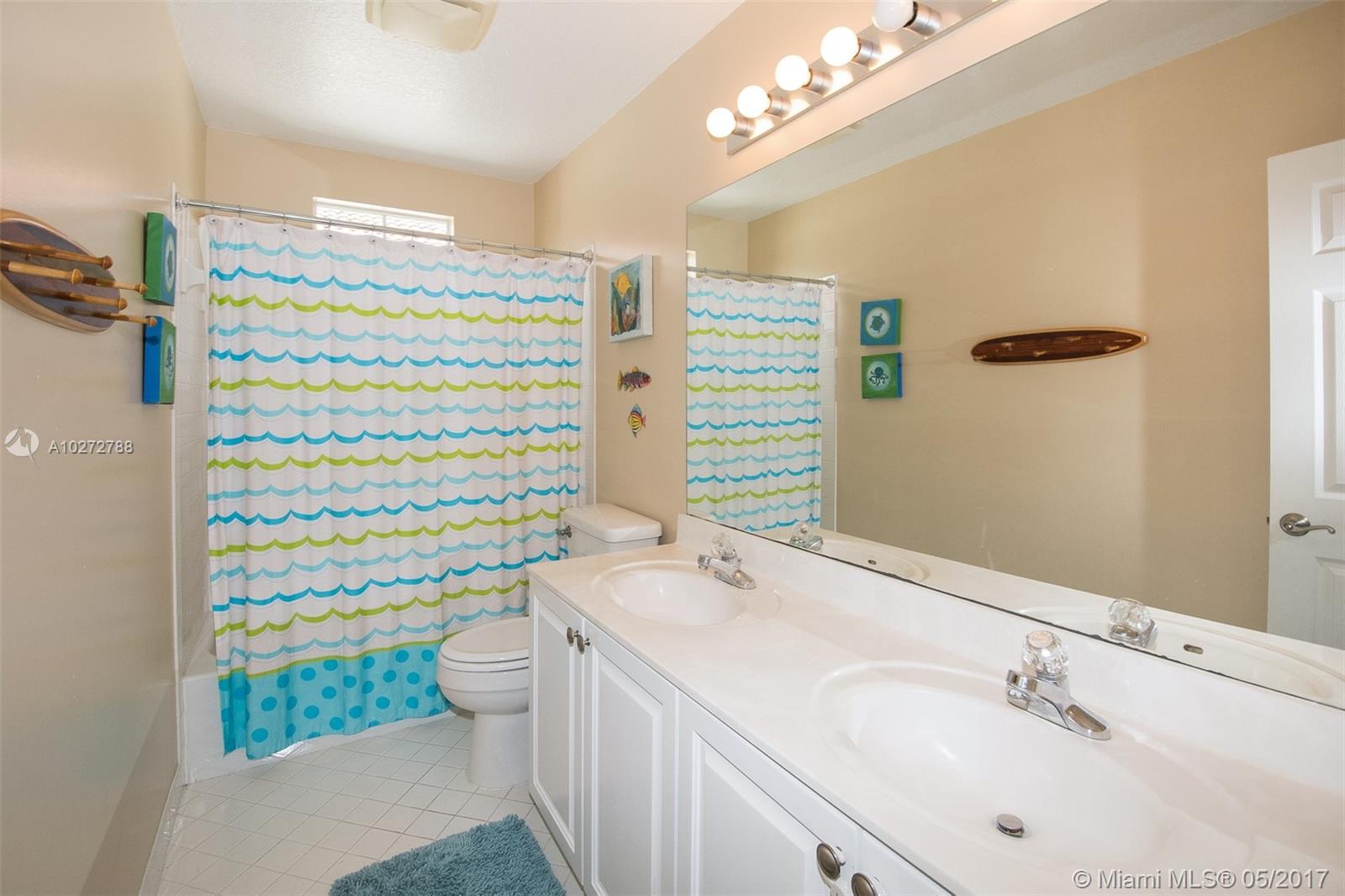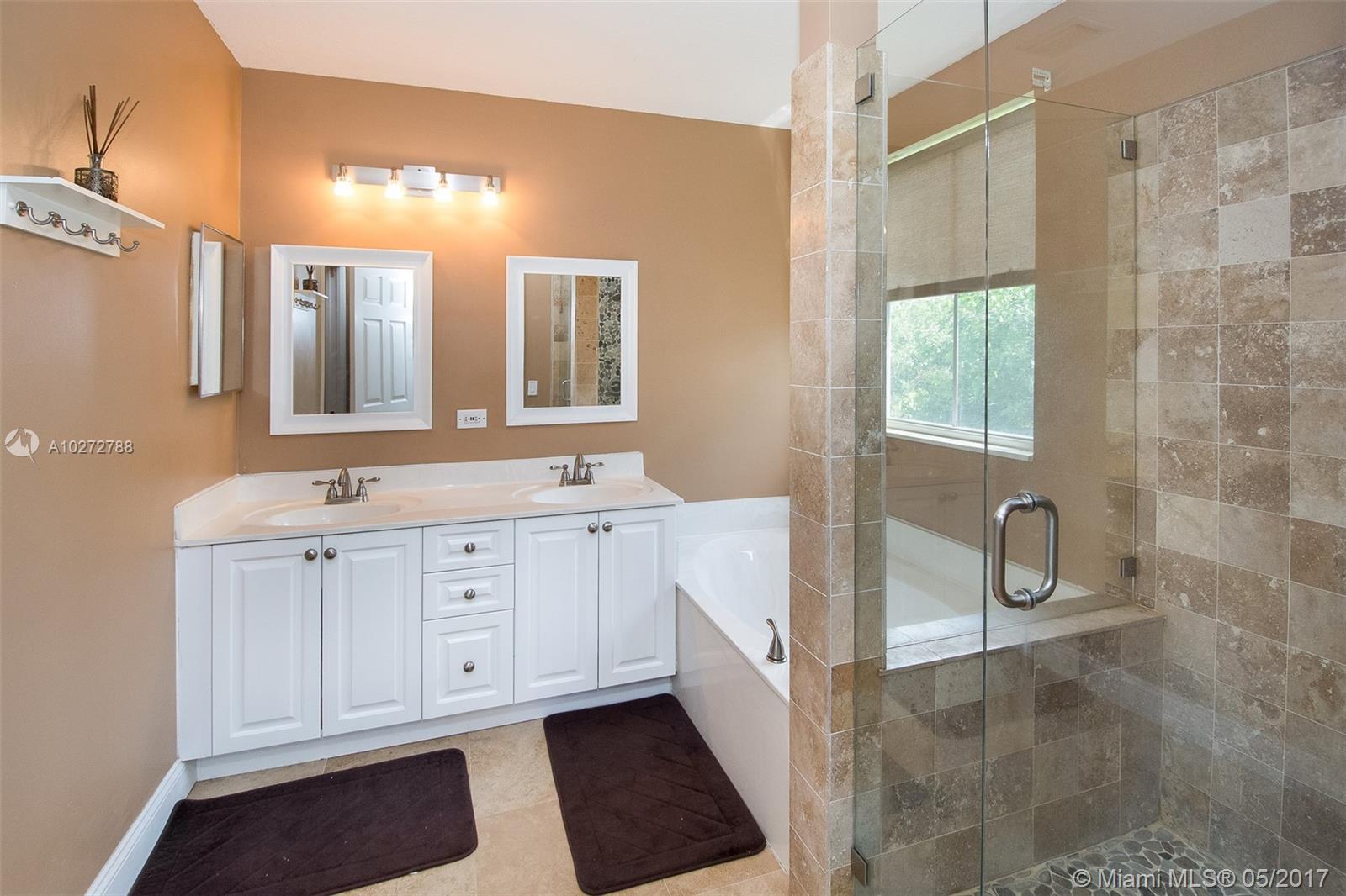 Very light and bright 2-story home with 4 bedrooms and 2 1/2 bathrooms in gate guarded Weston community. Spacious entrance to living and dining area. Living areas feature french doors, tiled floors and plantation shutters. All bedrooms are upstairs, well sized and with carpeted floors. Master bathroom beautifully remodeled. Backyard fully fenced with plenty of room to play and covered patio. Conveniently located close to shops, restaurants, and major highways. A rated Weston schools.