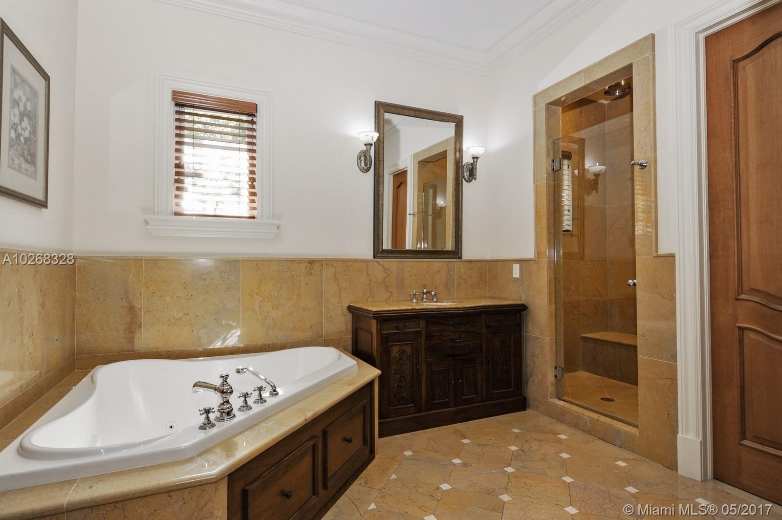 First time on the market! Beautiful, gated European villa on a quiet street in Pinecrest. This house is move in ready! No expense was spared!. All six bedrooms have ensuite baths and walk in closets with built-ins. Heated pool and spa with outdoor Cabana bath. Two family rooms, one w/ a built in wet bar, the other adjacent to kitchen. Two master suites, one on the ground floor and one upstairs w/ sitting area and two large closets. Separate maids area next to Laundry room. This is the perfect family home. This home is in pristine condition!