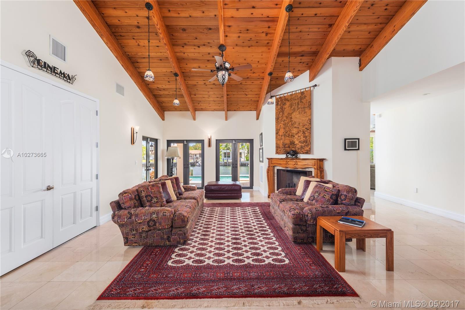 Enjoy ultimate island living in this beautiful 5 bedroom, 5 bathroom estate in exclusive Golden Beach. Featuring 136 FT WF, sitting on an expansive 12,642 SF lot situated on a cul-de-sac, the home boasts a waterfront pool w/covered outdoor seating & a cabana bathroom, movie theatre, volume ceilings, 2 car garage, formal dining room, 2 fireplaces, spacious master bedroom complete w/ office & large balcony, expansive walk-in closets, a gym, gourmet kitchen w/ top-of-the-line Subzero & Thermador appliances