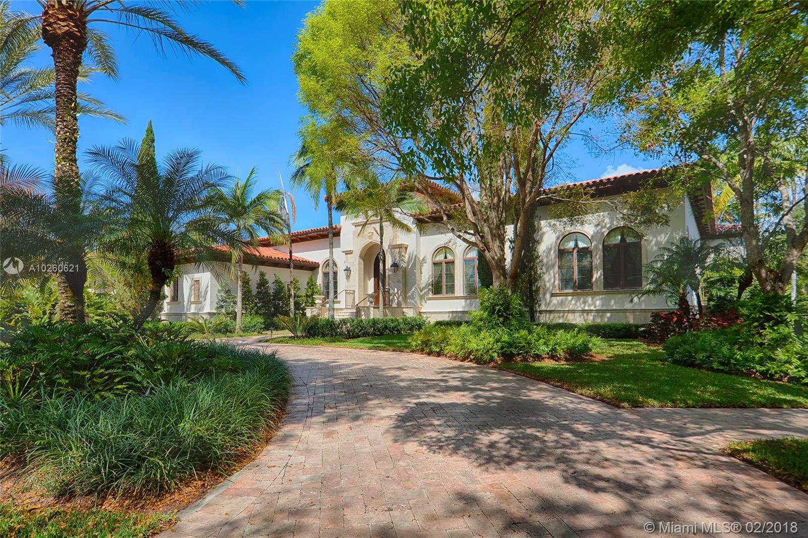 Stunning Mediterranean gem designed by Ramon Pacheco on gated beautifully landscaped 36,750 sf lot. Circular driveway,grand front entrance w/arched mahogany doors.Foyer,formal living & dining rm have high ceilings. Elegant custom finishes throughout:mahogany millwork, Roatan wood drs,built-ins,marble & wood flrs.The spacious kitchen has Sub Zero/Wolf appliances, large island,walk-in pantry. Breakfast area opens to family rm overlooking garden,pool area & covered terrace. Large sitting rm opening to master suite on a split level w/2 generous walk-ins, elegant new bathroom & private covered terr.Bedrooms wing has 3 addl en-suites.The pool deck & large yard feature a covered summer kitchen,built-in bar,full cabana bath.Separate staff quarters.SqFt is ADJ area as per owner.