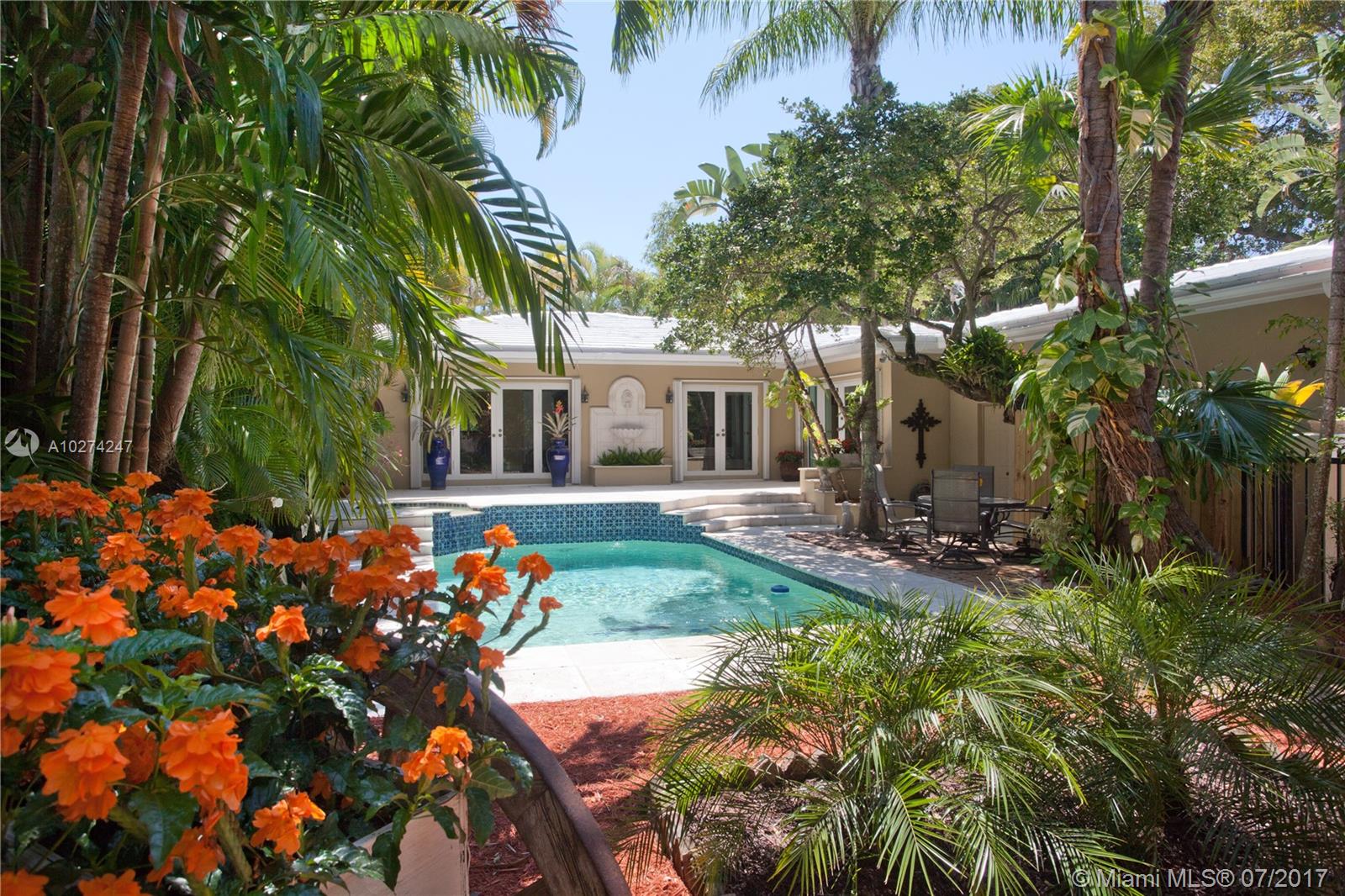 Special home that radiates pride of ownership, design savvy, and a great location. Located on a corner lot with electric gates and brick lined walkways. Dade County dark pine and travertine stone floors set the stage for fabulous! Living room with wood ceilings and walls of glass. Formal dining room and kitchen with breakfast room area. Family room leads out to an inviting pool and patio. Flex 5th bedroom options include a bedroom that has been converted to a magazine quality bar, or a small loft bedroom.
