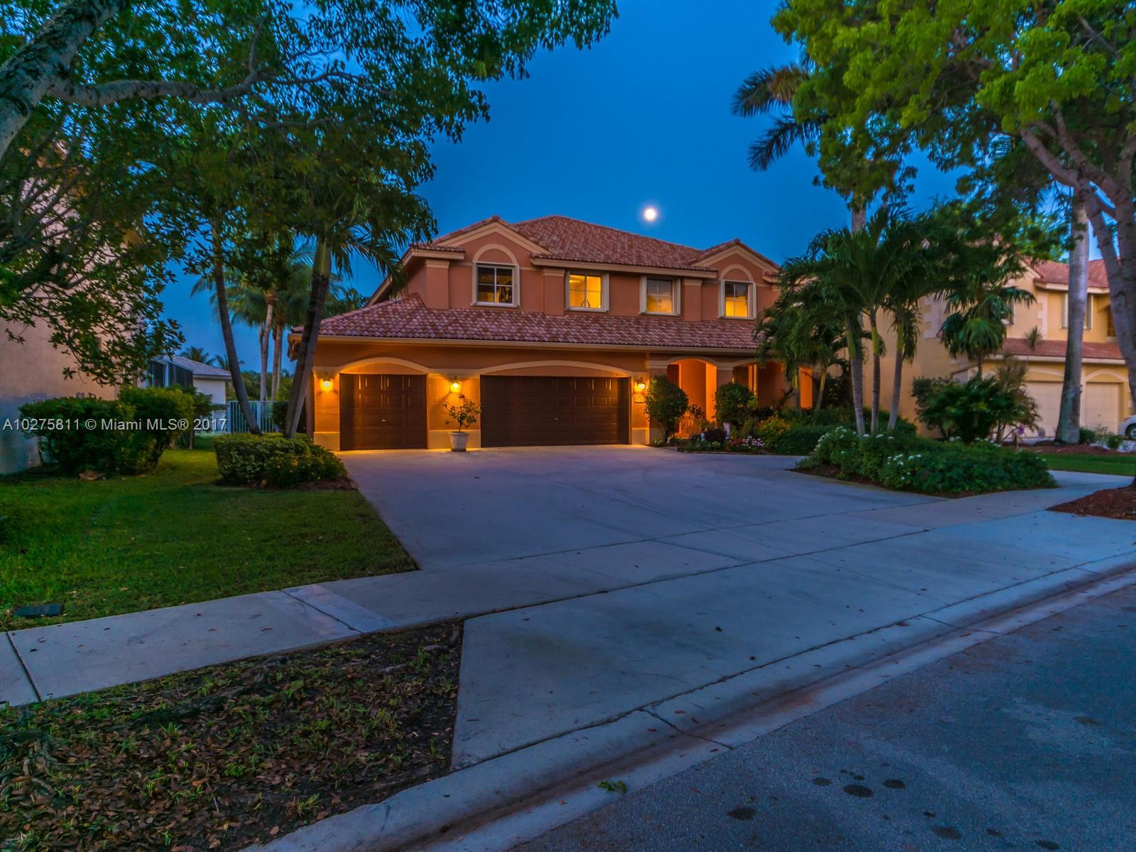 Fabulous Glendale model in sought after Heron Ridges features 5 BR plus office, 3 BA and 3CG on private, lakefront lot. This beautifully maintained home offers a spacious & functional floor plan, updated chef’s kitchen, tile throughout 1st floor living areas and Brazilian cherry hardwood in bedrooms and stairs. Wonderful pool and patio area with great lake views; perfect for entertaining! Accordion shutters, security system and oversized circular driveway that fits over 8 vehicles. Enjoy everything the city of Weston offers including A rated schools and library within walking distance, parks, fine restaurants all with easy access to highways and shopping, A Must See!