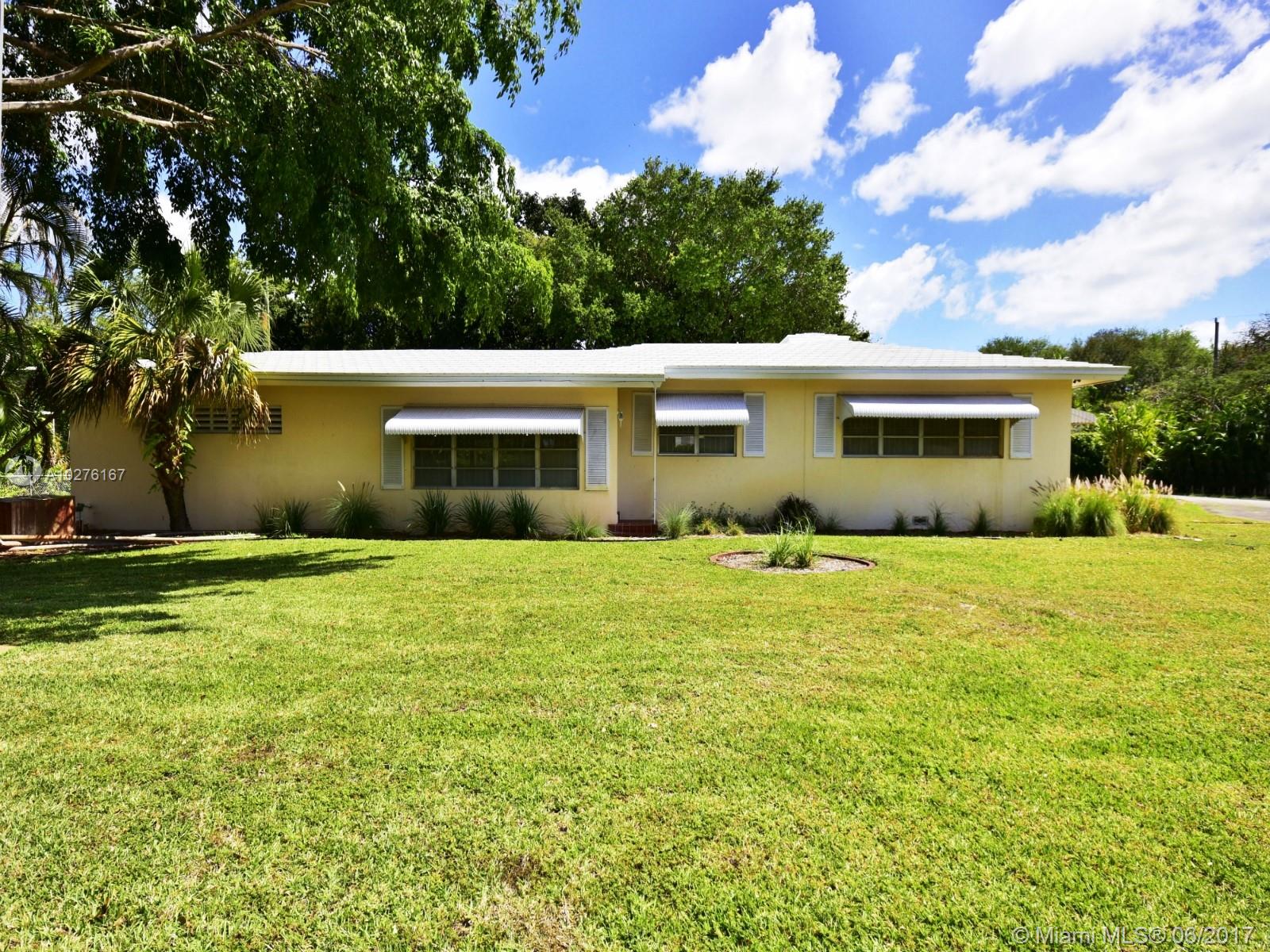 GRAND MIAMI SHORES STYLE RANCH on a 13,000+ SF corner lot in Miami Shores. This charming 2,715 SF home features a brand new roof, an amazing layout, 3 bedrooms, 2.5 bathrooms, 2 expansive light filled family rooms, wood & terrazzo floors, a garage with storage, and recently updated appliances. Fabulous living areas! The main oversized Florida has a beautiful chimney & walls of glass overlooking the backyard. Perfectly located on a quiet, tree-lined Miami Shores street.