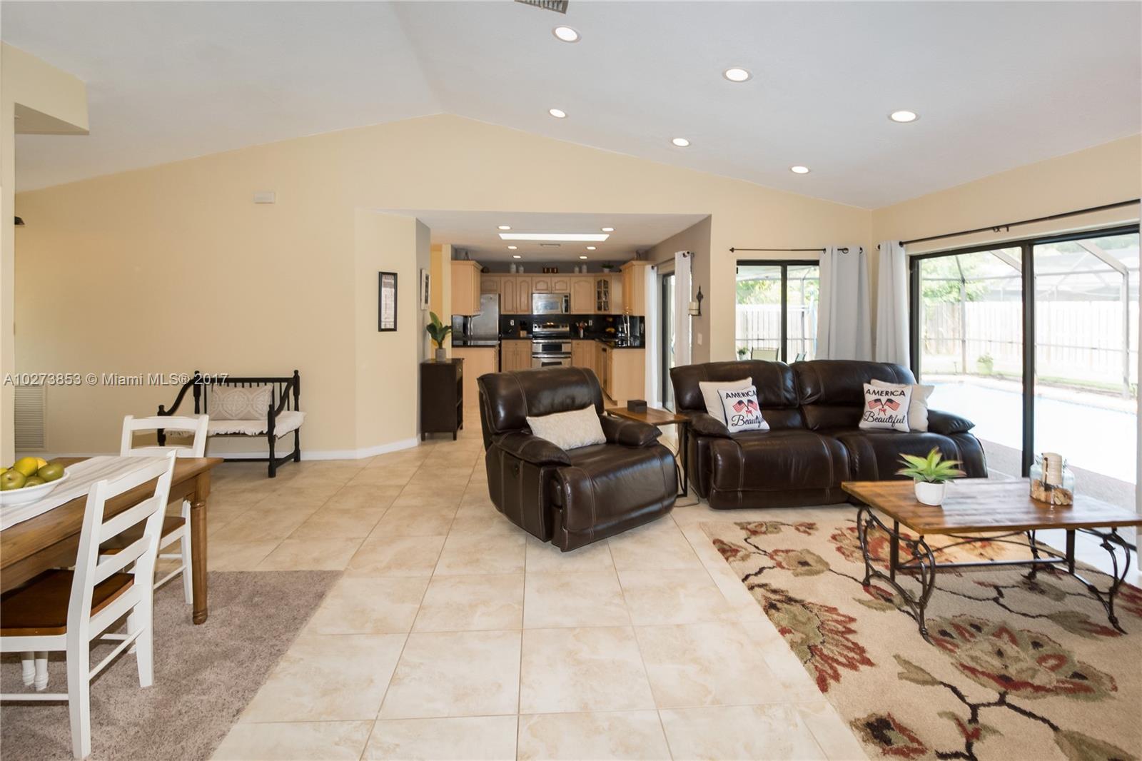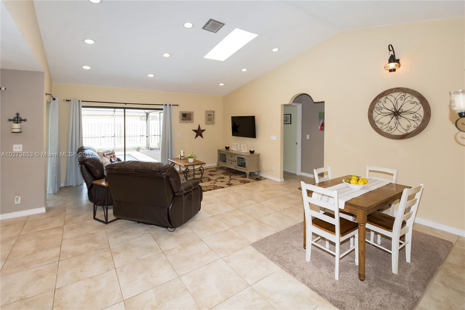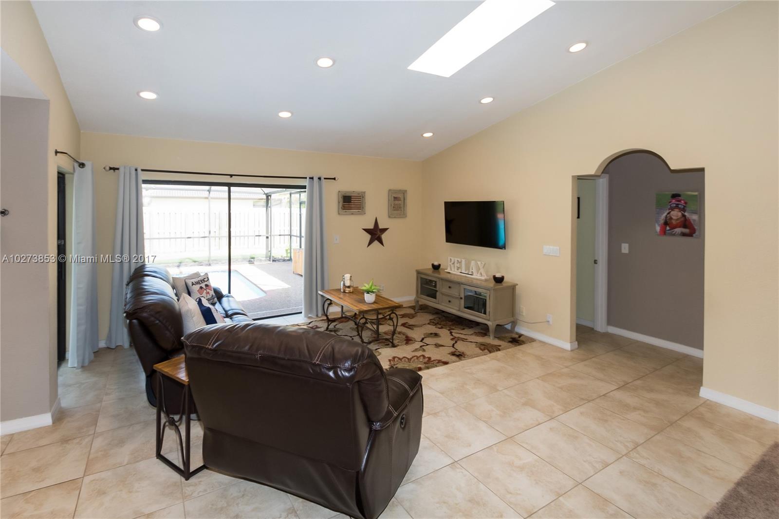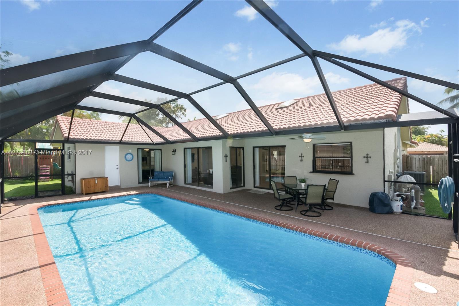 Come and see this immaculate, light and bright model like 4/2 home, in desirable Cypress Run South! Relax and enjoy sitting on your front yard patio and backyard screened patio with newly resurfaced pool and salt water chlorinated system. This home boasts a newer roof, newer A/C unit, freshly painted inside and outside, updated kitchen/granite counters and master bath with travertine tile, knockdown ceiling and walls, updated LED recessed lighting in family room, two skylights, stainless steel appliances, new pool resurfacing and super gutter, new sodded lawn and fenced yard, large side yard and outside children's gym/swing set and so much more!