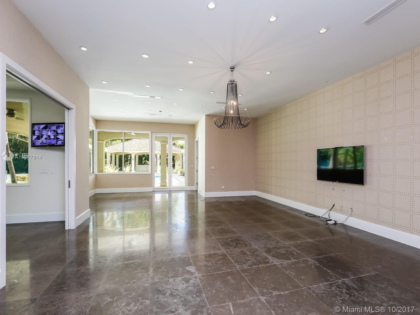 PRICED TO SELL!!! STUNNING GATED TROPICAL ESTATE ON A 1.16 ACRE LOT IN NORTH PINECREST. Walk into this bright and spacious 6BR/7.5B home perfect for entertainment. An ample foyer leads you to the large formal living room overlooking covered terrace, pool and tennis area. Split floor plan. The enormous master suite includes a massive walk-in closet, gym area,office, beauty salon, split bath with dual sinks, toilets, bidets, and double shower heads and a separate Jacuzzi. Ample gourmet kitchen with a breakfast area overlooking the pool. Enjoy a movie in your own home theater with it's own bar. Play basketball or tennis in your own court and then relax by the pool and cook in the cabana with your summer kitchen.