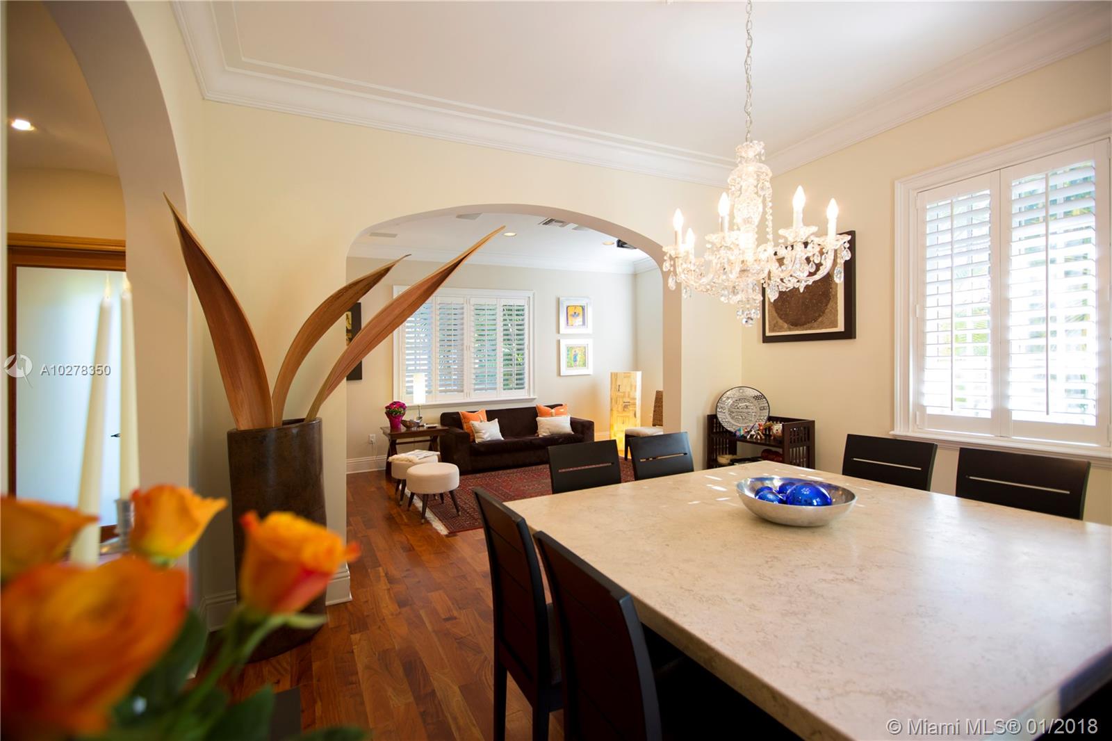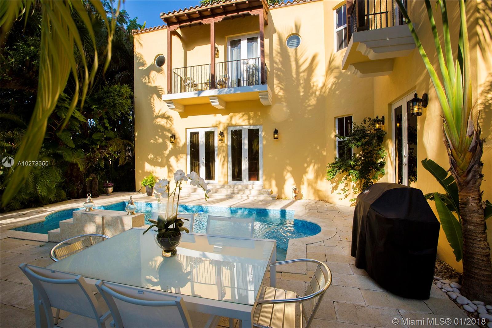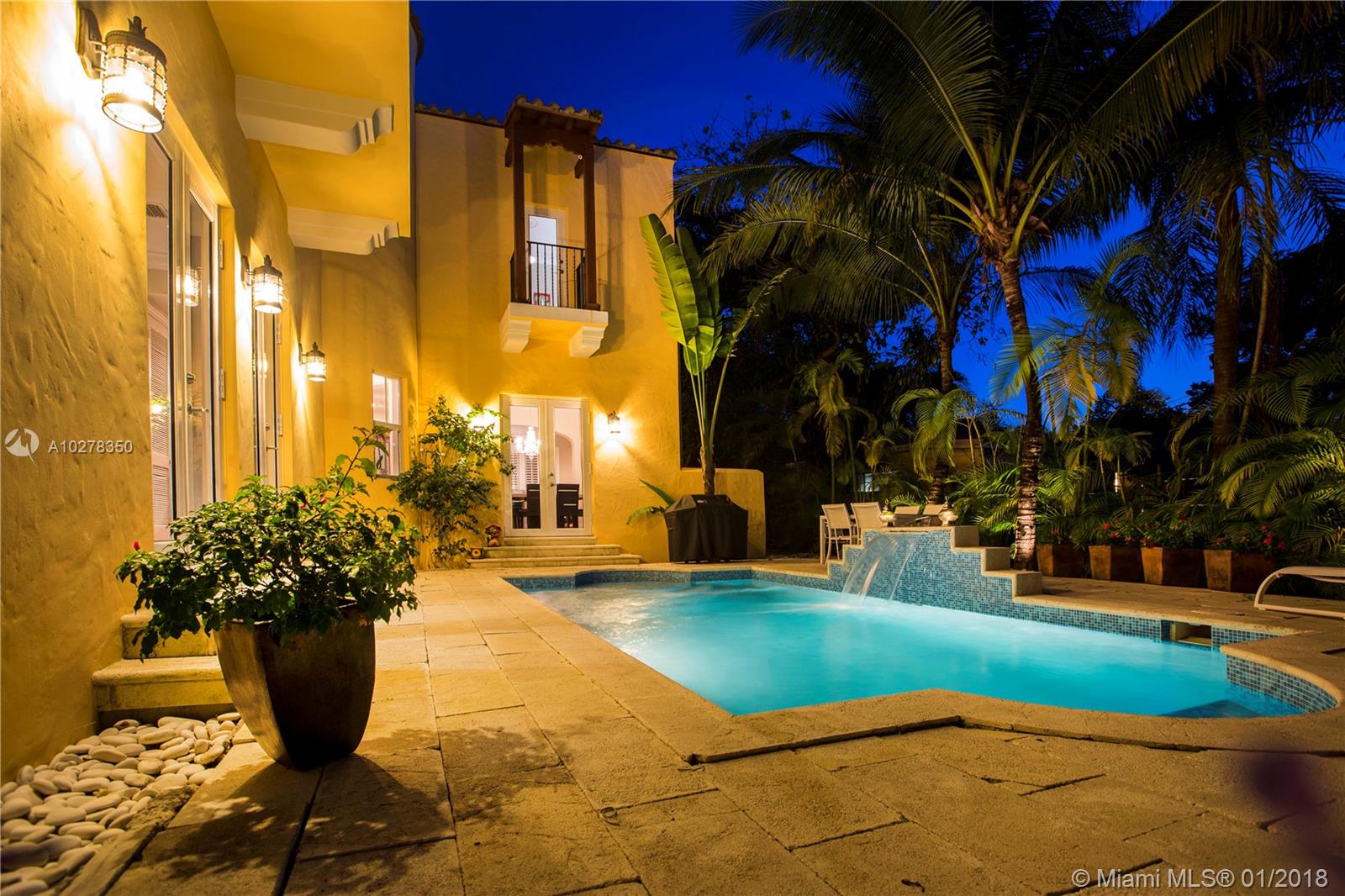 Classic elegance meets new world comfort in this newer construction home in the South Gables, just East of US-1. This lovely 2 story 3-bedroom home, built in 2009, is ready for you to move in. Romantic balconies, lovely open plan kitchen, with stainless steel, granite and glass backsplash. 10 foot ceilings, hardwood floors and impact windows that flood this home with light, offer you a great place to live. Beautiful pool with waterfall and a great patio to relax after a hard day. The living room includes a projector and retractable screen to enjoy a movie or two. Only a 15 minutes drive to the Airport and downtown Miami. You will live close to restaurants, parks, shopping and the best that Coral Gables has to offer.