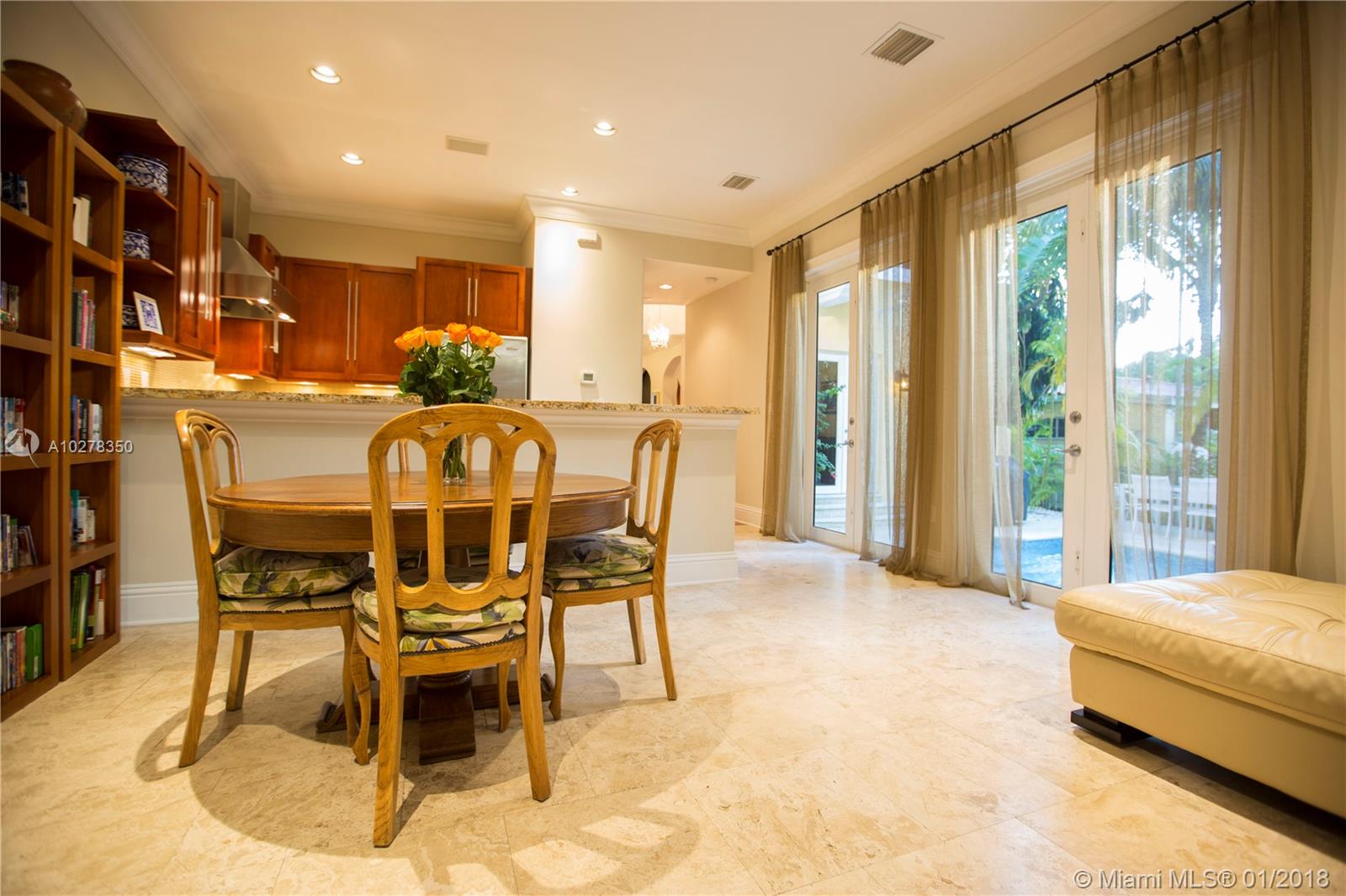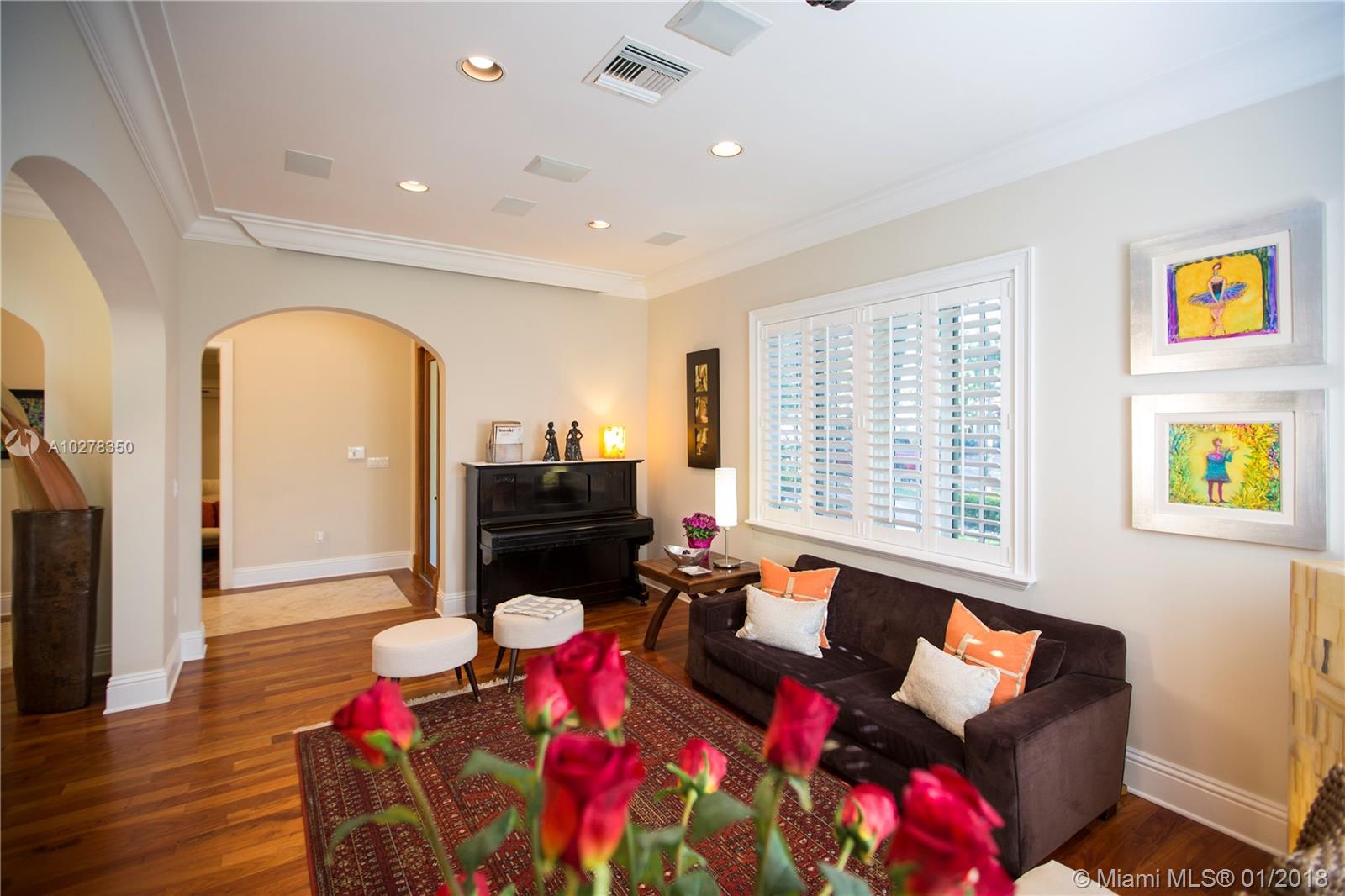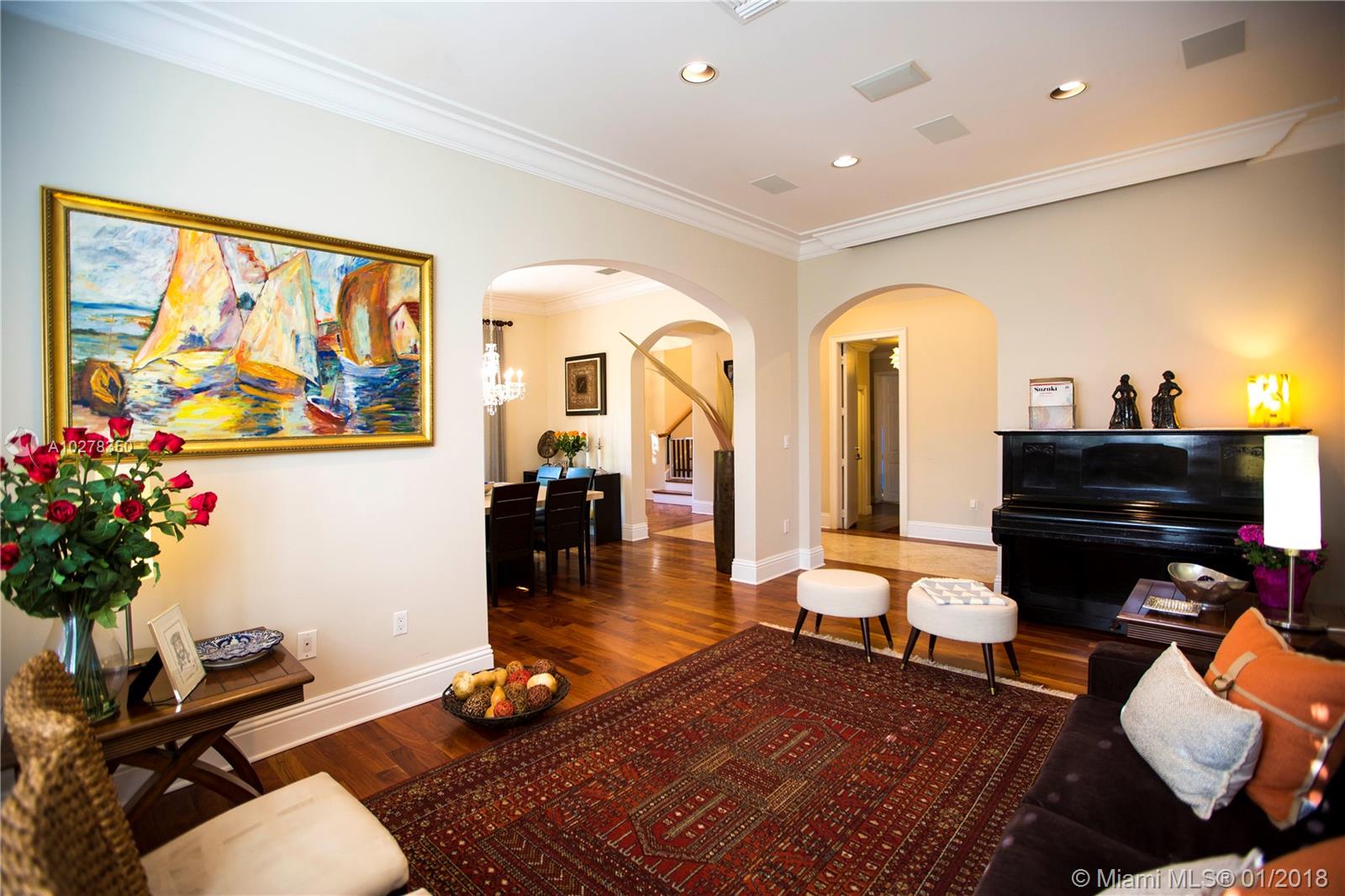 Classic elegance meets new world comfort in this newer construction home in the South Gables, just East of US-1. This lovely 2 story 3-bedroom home, built in 2009, is ready for you to move in. Romantic balconies, lovely open plan kitchen, with stainless steel, granite and glass backsplash. 10 foot ceilings, hardwood floors and impact windows that flood this home with light, offer you a great place to live. Beautiful pool with waterfall and a great patio to relax after a hard day. The living room includes a projector and retractable screen to enjoy a movie or two. Only a 15 minutes drive to the Airport and downtown Miami. You will live close to restaurants, parks, shopping and the best that Coral Gables has to offer.