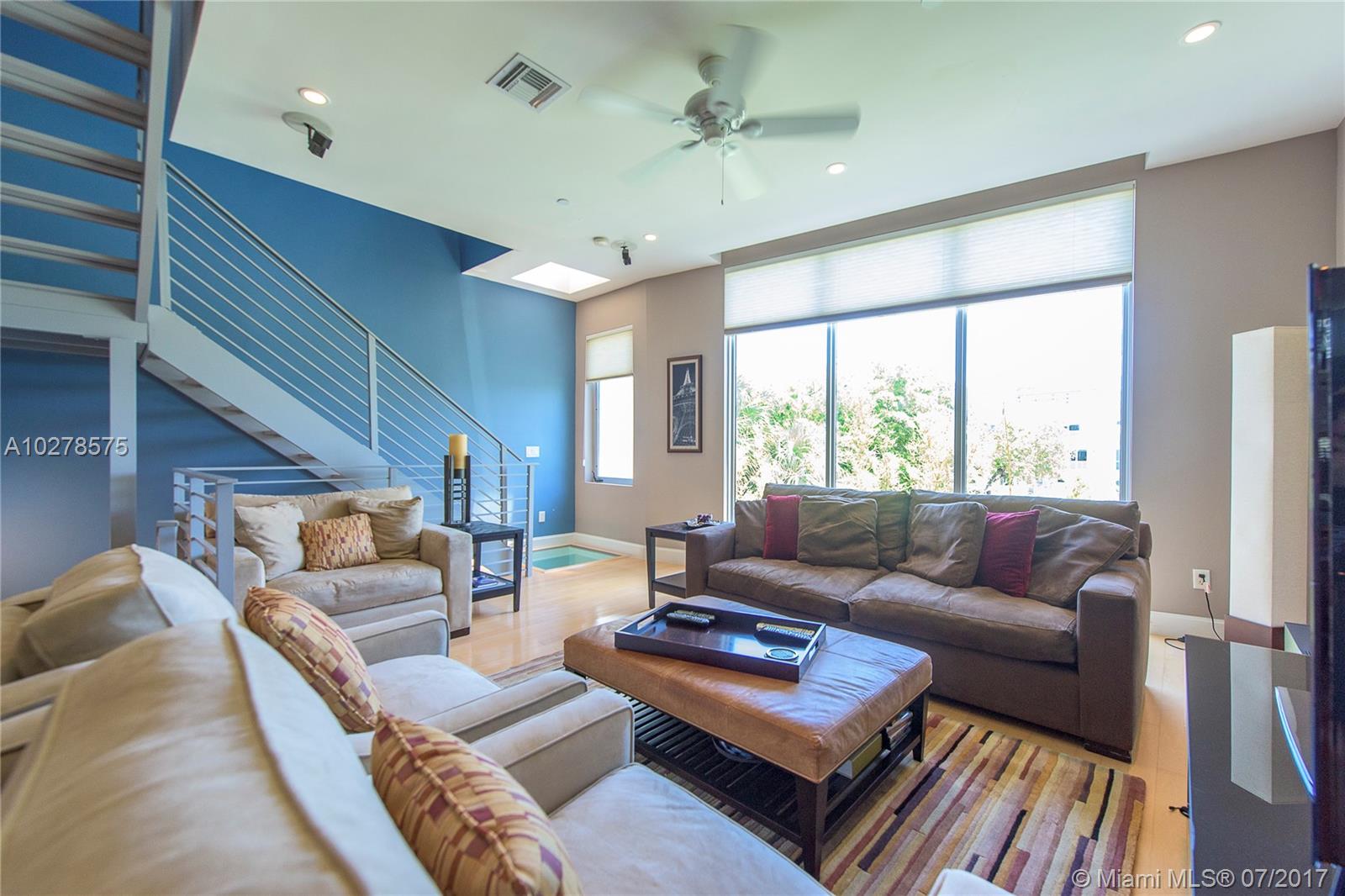 Only steps to the beach, this dramatic four story 3BR/3.5BA Miami Modern design boasts floor to ceiling windows, elevator, a floor-thru staircase, premium fixtures and fine Euro-contemporary cabinetry. Features include: Gorgeous real wood flooring, a roof-top pool and terrace, private balconies from both Master and guest suites, a ground floor bedroom with bath. There is a both walled and gated street side public entry and a private gated motor court entry with garage access. Very attractive location! ** This property can be financed w/ 10% down & no PMI**