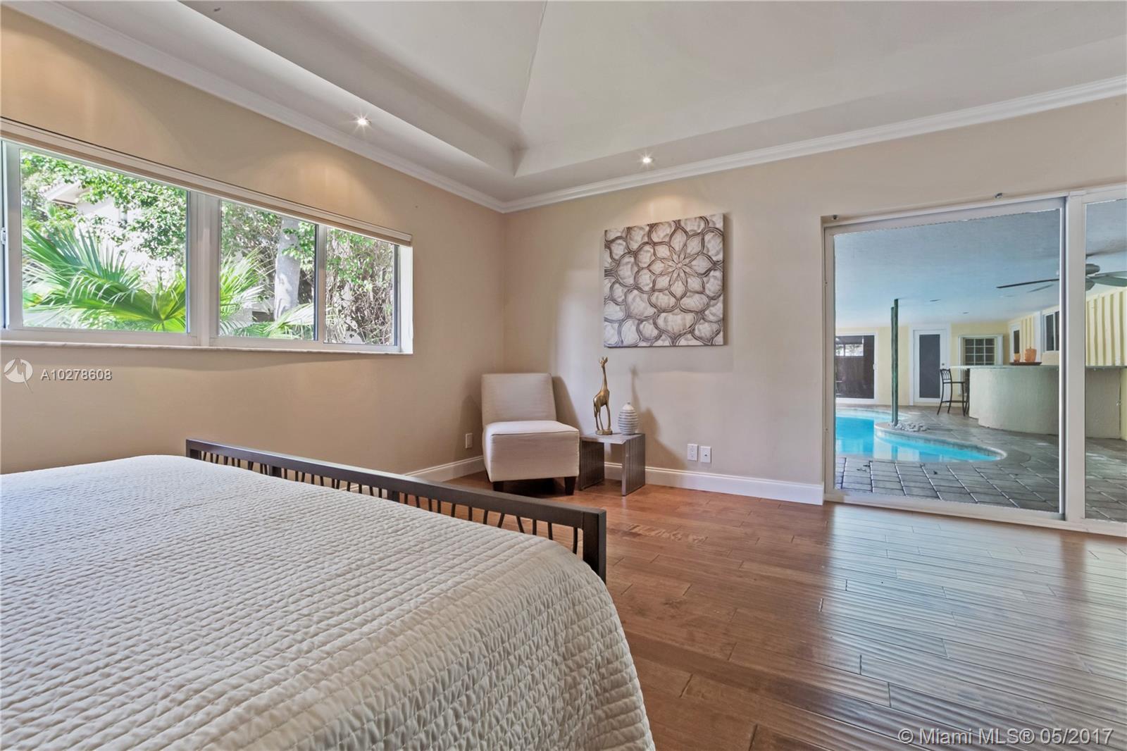 This beautiful & updated Coral Ridge home is 1/2 mile from beach & located in prestigious & highly sought after A-rated Bayview school district. The 4BR/3BA home features volume ceilings throughout, gourmet kitchen w/ granite counter tops, breakfast bar & top of the line appliances, formal living & dining, wet bar, marble & hardwood floors, split bedroom floor plan, modern updated bathrooms & wood burning fireplace. Outside boasts a huge covered patio w/ bar area & sun-drenched free form heated pool w/ spa. Entire house has impact windows & doors & brand new tile roof (May 2017)