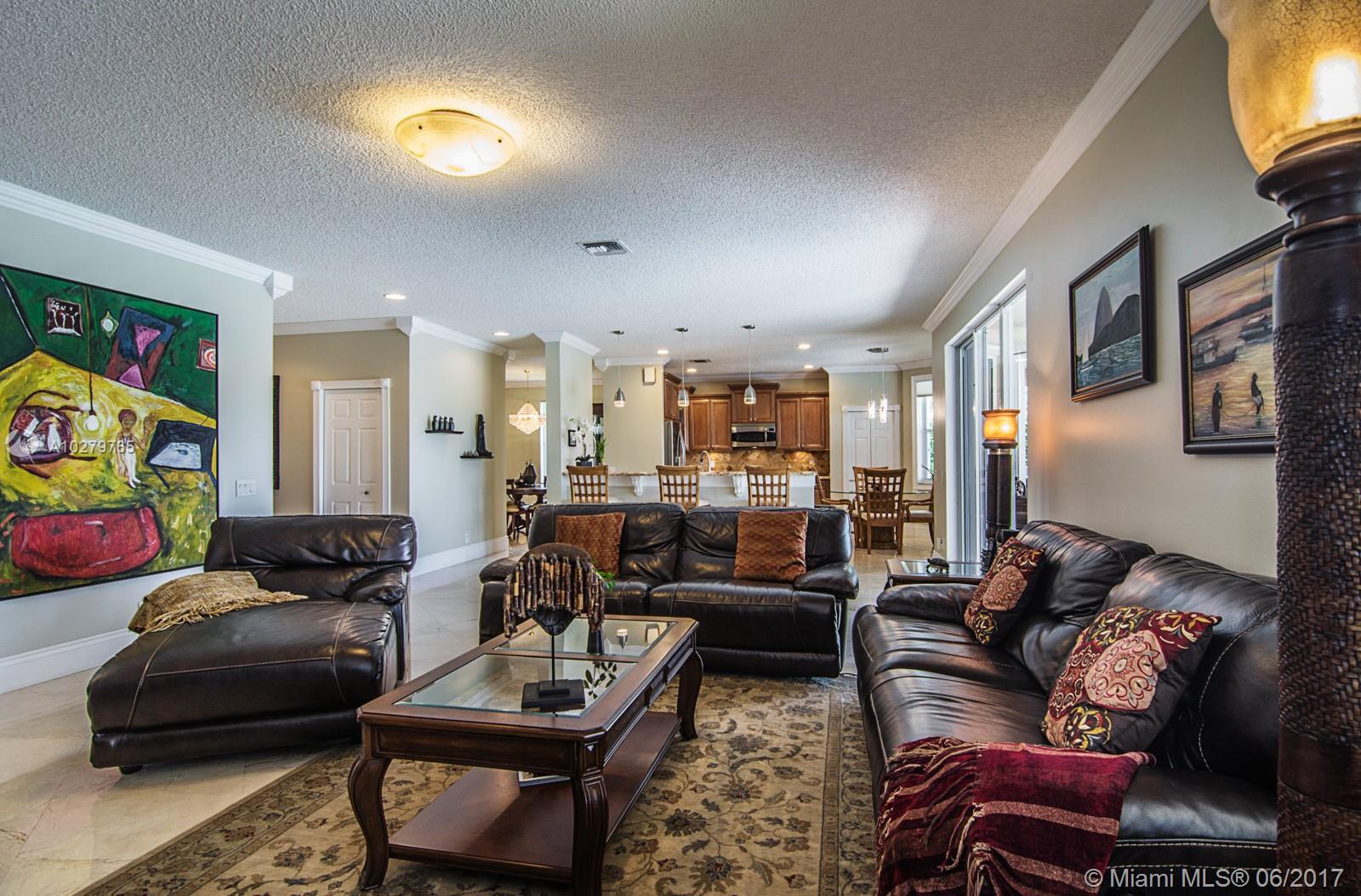 If you want privacy, this is the house. Tucked on an oversized 11,144 sq ft waterfront lot, fully fenced with gorgeous views with No Neighbors in sight. Renovated Heated saltwater pool with new pump, expansive paver patio with spacious overhang. Popular Heather model shows like a model. New diagonal marble flooring on first level with oversized family room with views to pool & lake. Newer kitchen with custom wood cabinetry, wall oven, stainless steel appliances, cooktop and bay window to yard. Extensive crown moldings throughout the house. Laminate Wood flooring upstairs with Grand Bonus room (with closet) Newer A/C, accordion shutters and so much more.