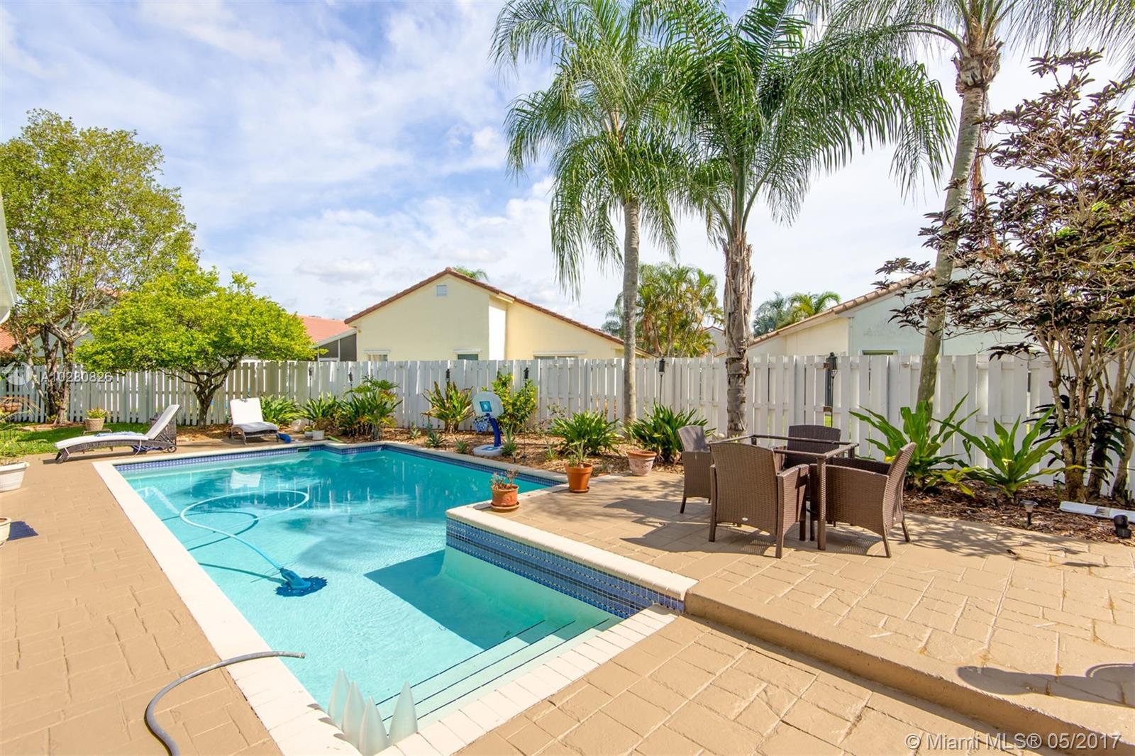 OUTDOOR LIVING AT ITS BEST. SPACIOUS 4 BEDROOMS 2.5 BATHS POOL HOME WITH EXTRA LARGE FENCED BACKYARD.. 2 CAR GARAGE , HURRICANE SHUTTERS, NEWER ROOF AND MORE . NEAR SAWGRASS MALL AND MAJOR ROADS. A MUST SEE PROPERTY
