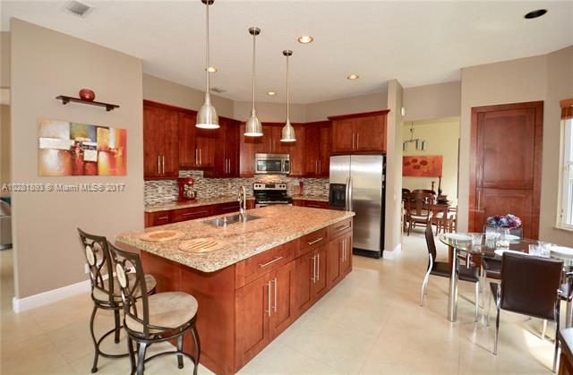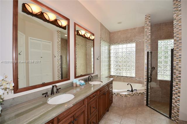 Get the best of Weston lifestyle in this impeccably maintained 5 Bedroom, 3 Bathroom pool home on a corner lot in the exclusive community of The Lakes. 24" seamless porcelain floor, 5 1/4 baseboards, new neutral paint. SPECTACULAR KITCHEN with 42" wood cabinets, soft-close drawers, pull-out spice racks, HUGE center island with massive, one-piece granite top, top-of-the-line SS appliances, backsplash and more. Remodeled master bath. Relax on the large landscaped patio by the pristine salt water pool, huge corner lot with extended fence, accordion shutters. New top of the range air conditioning unit with NEST unit, New top of the range boiler and so much more. Want a trouble free property? Recent inspection had very few minor issues that seller has fixed for YOU"